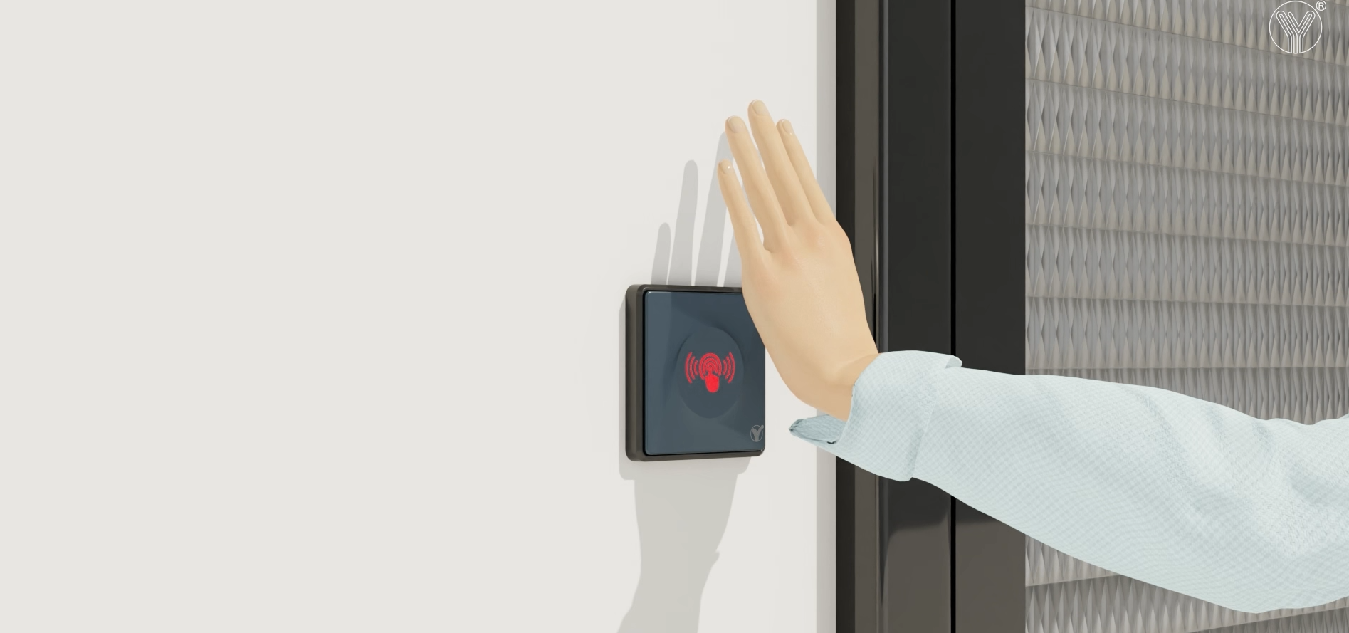 ) Infrared sensing and push Exit button with dual function