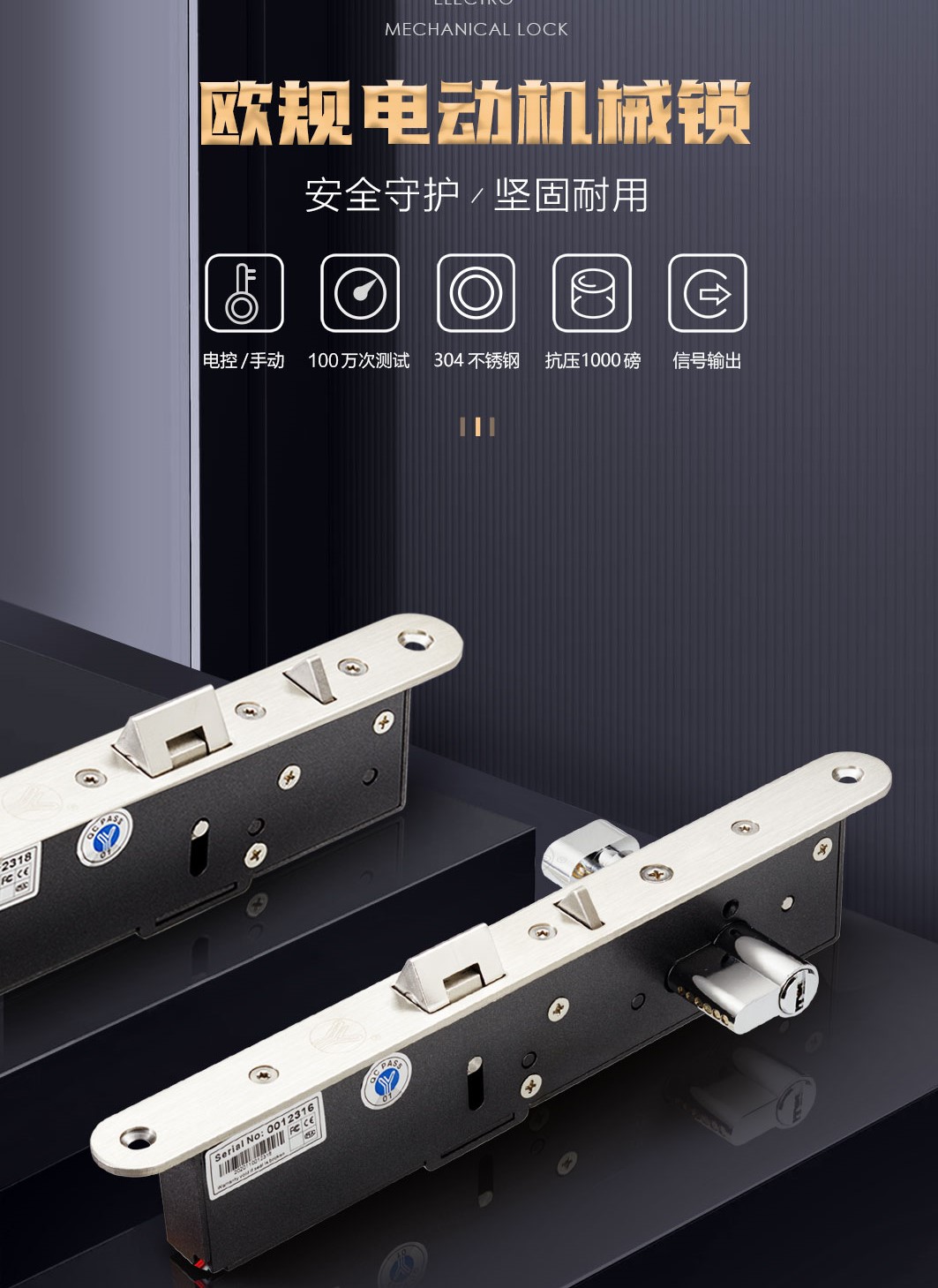 電子機(jī)械鎖應(yīng)用于單向式雙向開的、木門、金屬門、有框玻璃門,電子機(jī)械鎖堅(jiān)固的不銹鋼鎖體,具有獨(dú)特的安全設(shè)計(jì),可自行設(shè)定電鎖工作模式,鎖舌可承受800kg的沖擊,配有歐規(guī)鎖芯設(shè)計(jì),可以達(dá)到平時(shí)“電控”與緊急時(shí)“手動(dòng)”雙用的目的。部件全部采用金屬結(jié)構(gòu),在60*C高溫或
