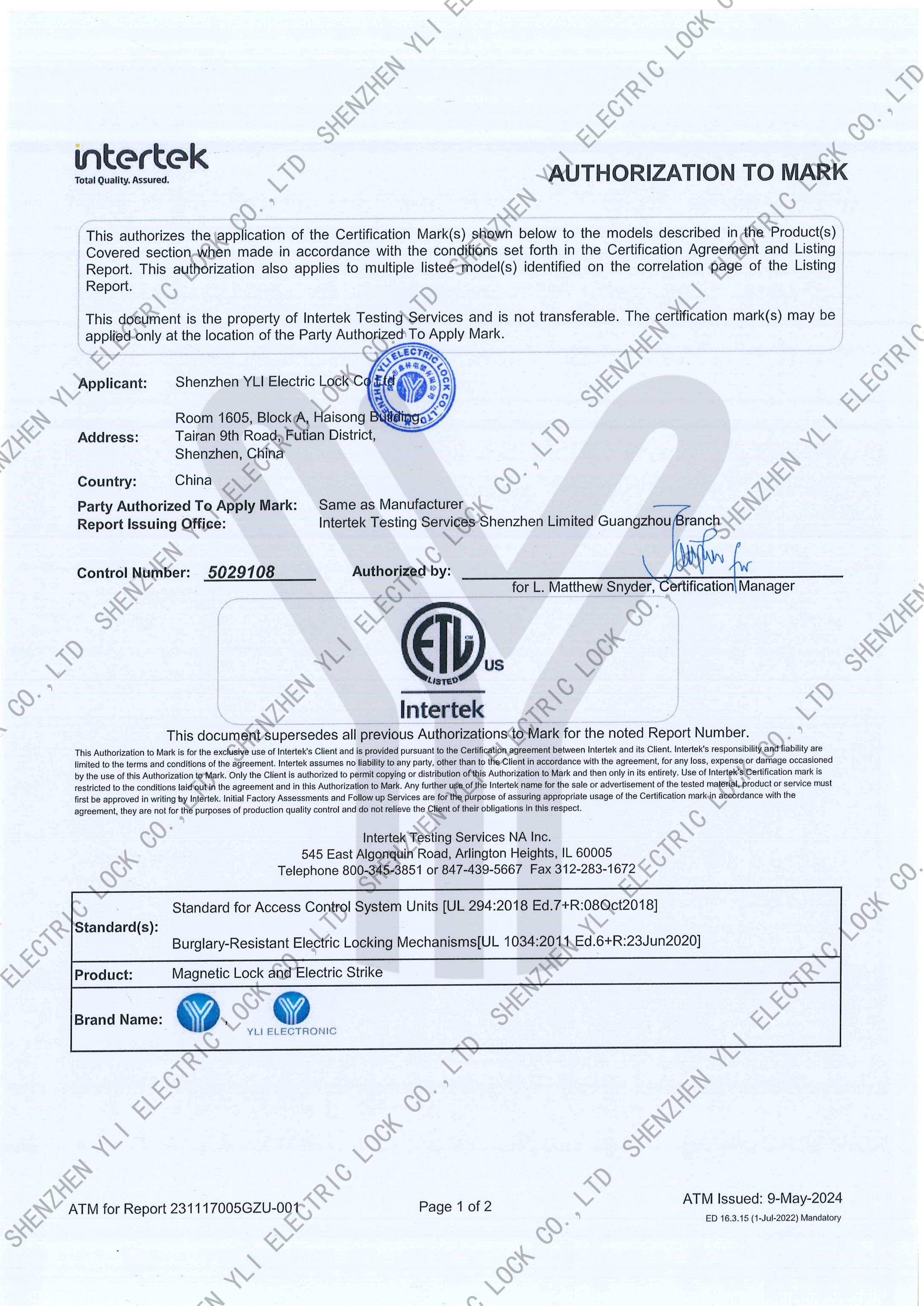 YLI products have passed the EU EN1634 EN1155 fire protection certification
