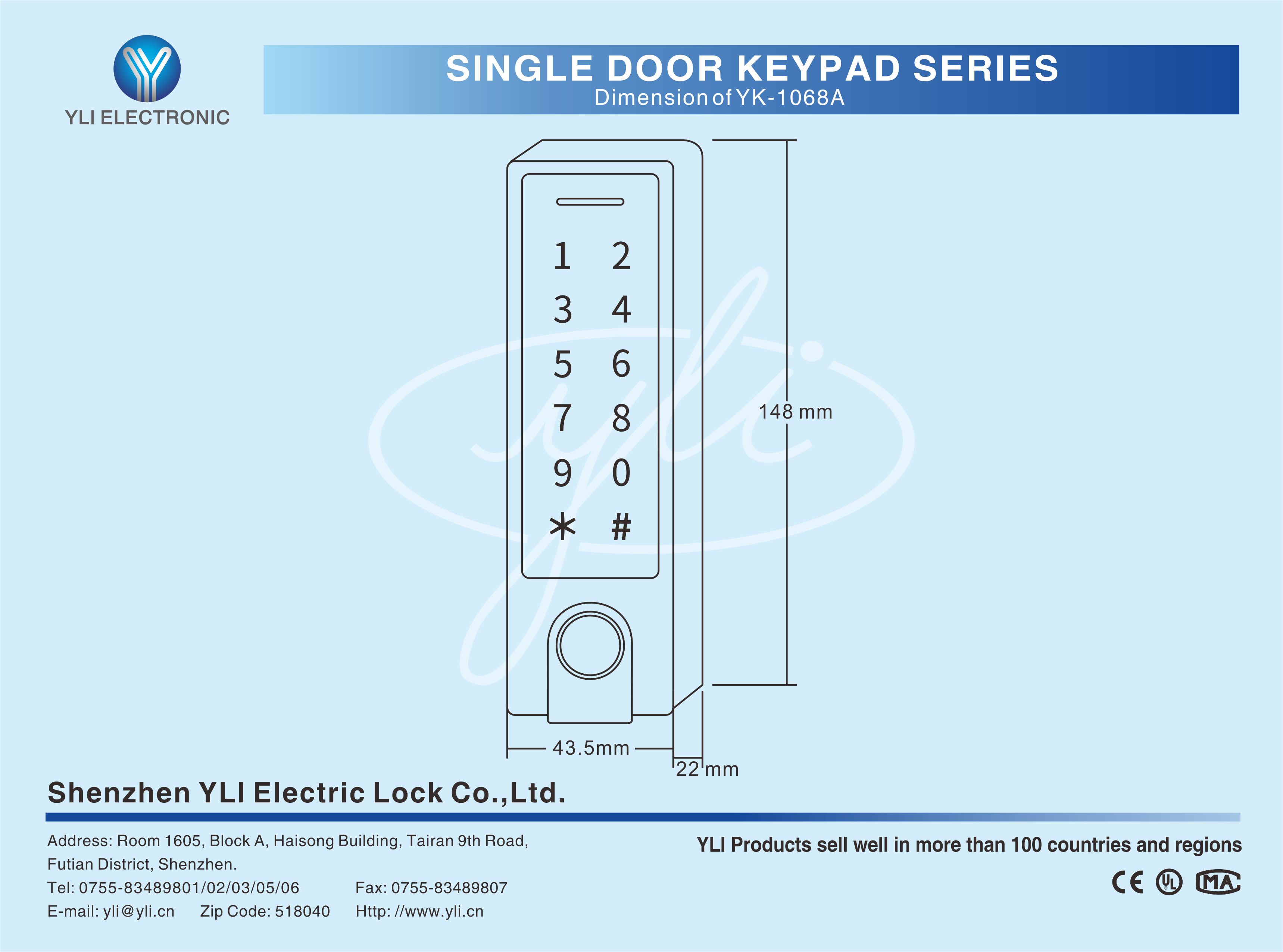 YK-1068 is a fingerprint access controller with touch keypad and metal cose. It uses Atmel MCU assuring stable performance and low-power circuit makes long service life. It is IP66 waterproof,it is very suitable for outdoor use.