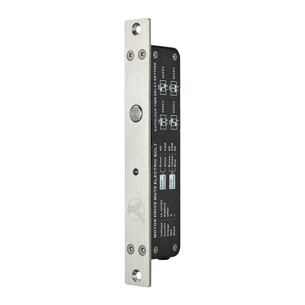 Motor driven mute electric bolt,the bolt is controlled by motor drive to realize lock and unlock. The driving force of the motor is very strong,the bolt can be pushed out by the powerful thrust of the motor to align the door when the door is deformed or misaligned. The parts are made of lightweight materials, work more smoothly, less resistance, can achieve mute when lock and unlock.The PCB is equipped with an electronic protection device to realize the precise control of locking and unlocking. In addition,compared with the traditional electric bolt which uses electromagnet to lock, which is low power consumption, energy saving and environmental protection.