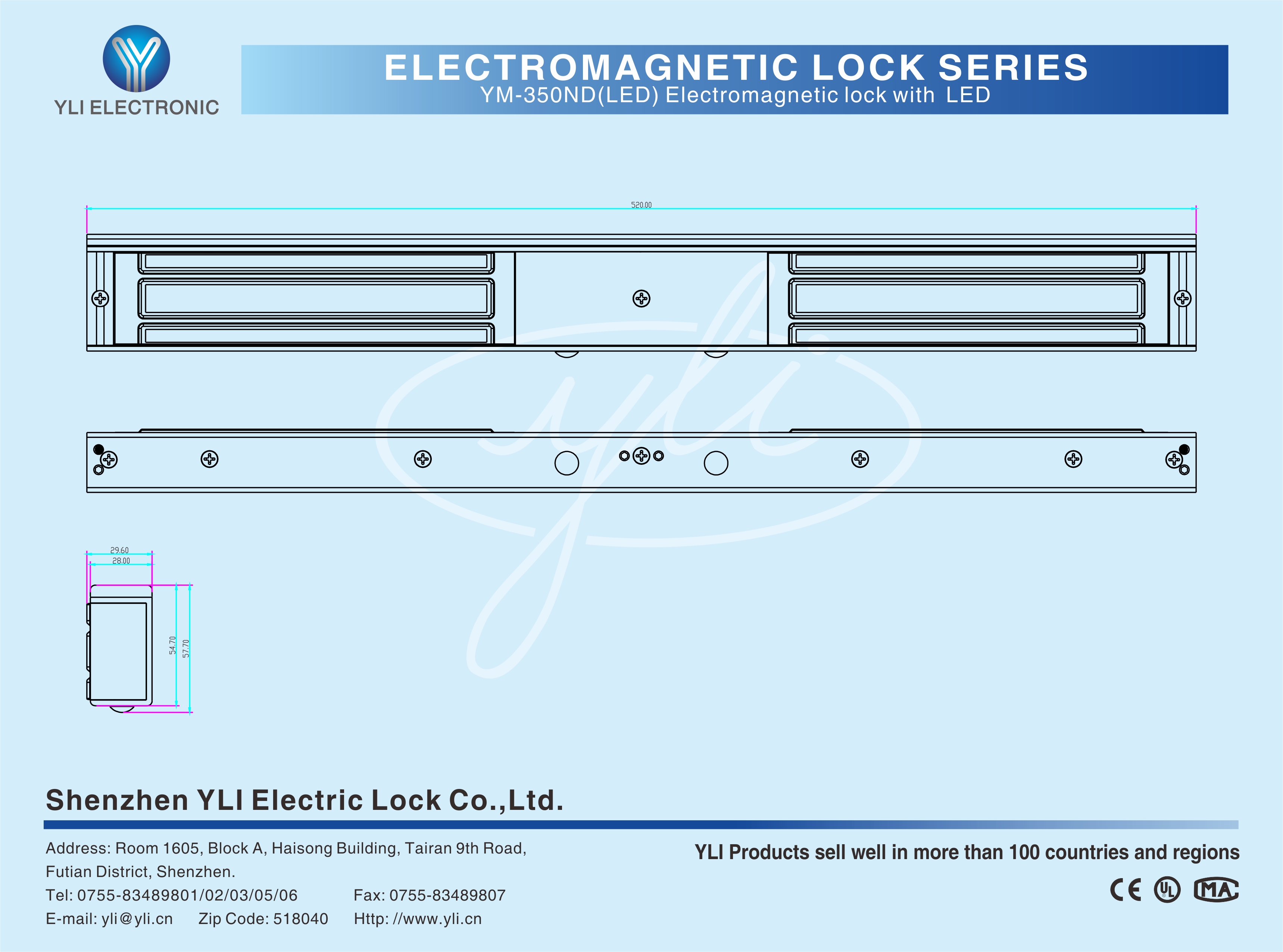 YM-350ND(LED) Double door magnetic lock is designed for wooden door, metal door, glass door and fireproof door. There is a set of lock status signal (NO/NC/COM) output contacts. The lock body is equipped with a large LED light . The green light indicates unlocking , and the red light indicates locking. YLl magnetic lock cores are produced with robotic laser welding technology, providing 2 to 3 times stronger impact resistance and torsional resistance than conventional production processes. The surface is treated with the internationally leading electroplating process and the lock itself has passed the 240-hour salt spray test in the national laboratory, achieving excellent performance of anti-oxidation, anti-rust and anti-corrosion. Our company offers a complete range of brackets for different locks.