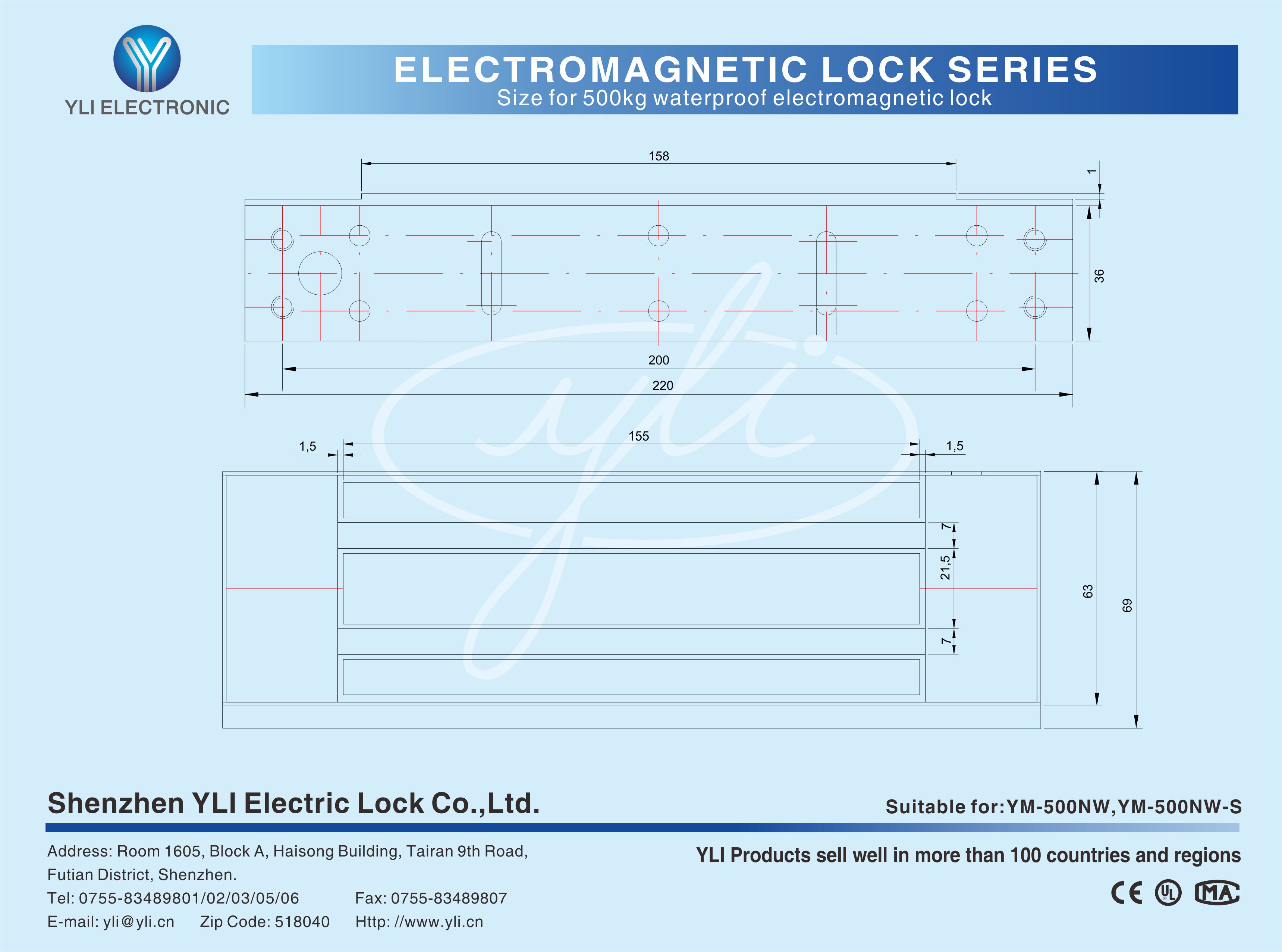 YM-500NW/YM-500NW-S Single door mortice magnetic lock is designed for wooden door, metal door, glass door and fireproof door. There is a set of lock status signal (NO/NC/COM) output contacts. YLl magnetic lock cores are produced with robotic laser welding technology, providing 2 to 3 times stronger impact resistance and torsional resistance than conventional production processes. The surface is treated with the internationally leading electroplating process and the lock itself has passed the 240-hour salt spray test in the national laboratory, achieving excellent performance of anti-oxidation, anti-rust and anti-corrosion. Our company offers a complete range of brackets for different locks.