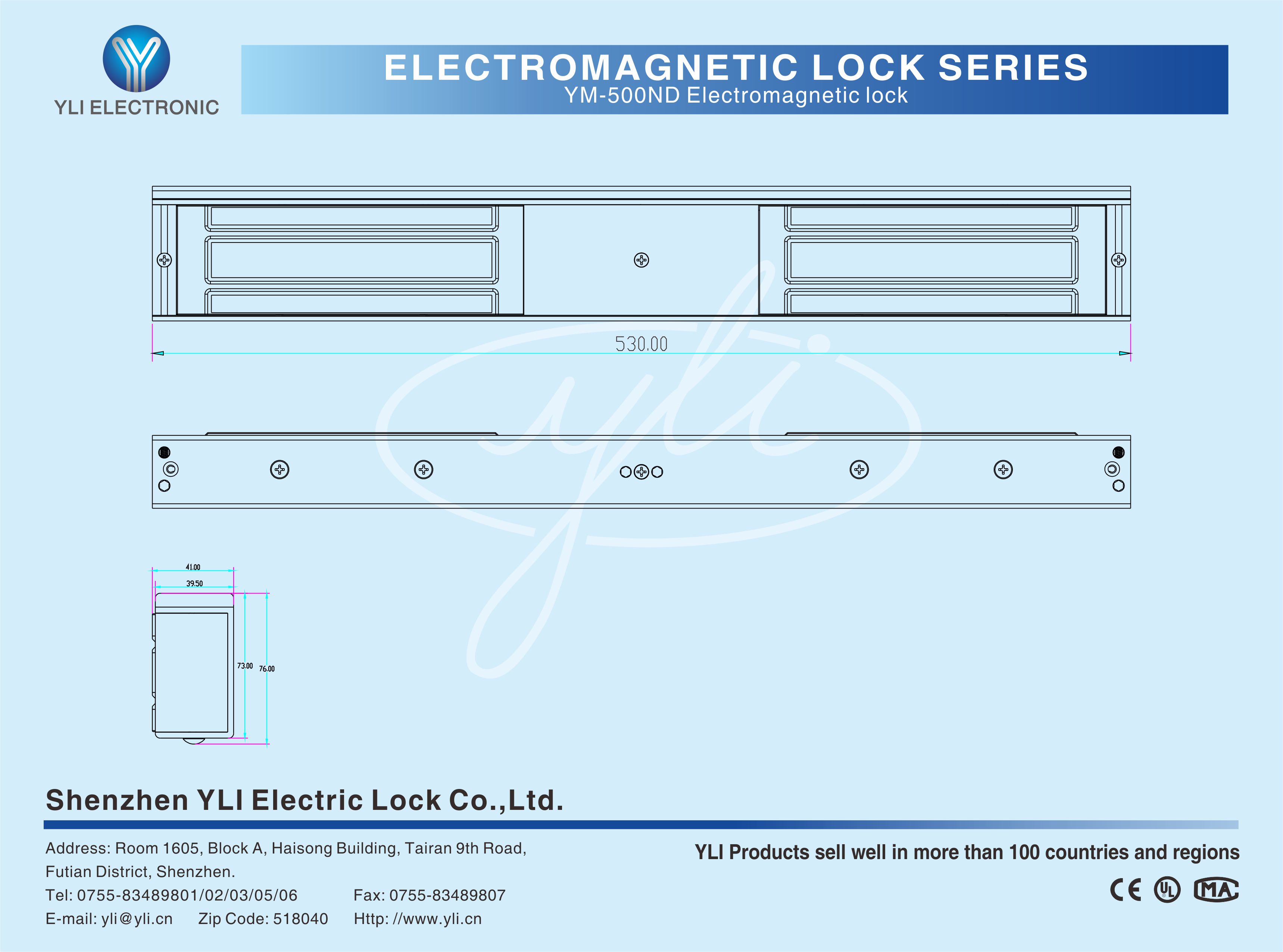 YM-500ND Double door magnetic lock is designed for wooden door, metal door,glass door and fireproof door. YLl magnetic lock cores are produced with robotic laser welding technology, providing 2 to 3 times stronger impact resistance and torsional resistance than conventional production processes. The surface is treated with the internationally leading electroplating process and the lock itself has passed the 240-hour salt spray test in the national laboratory, achieving excellent performance of anti-oxidation, anti-rust and anti-corrosion, Our company offers a complete range of brackets for different locks.