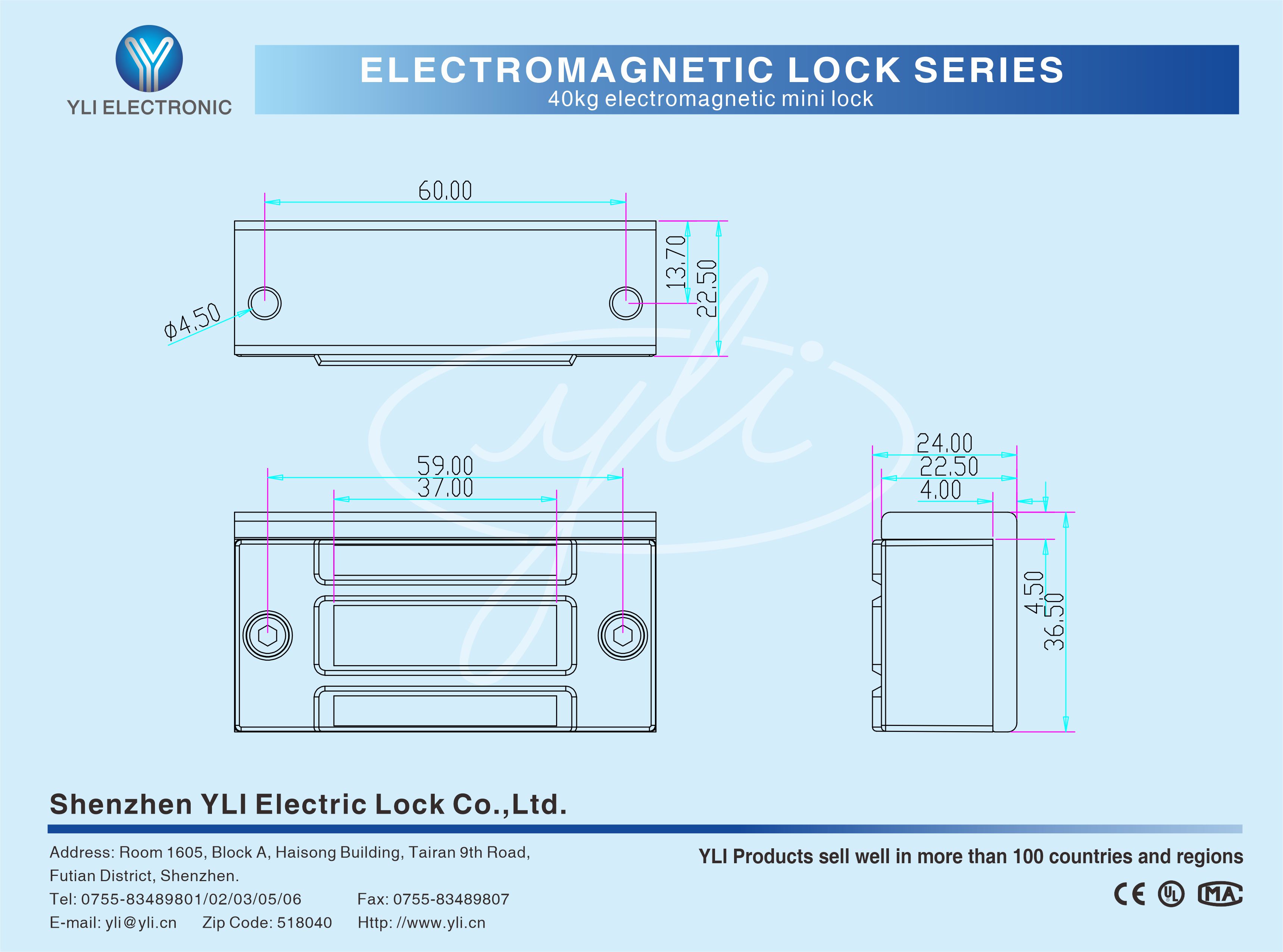 YM-40 is a mini single door electric lock, it is designed for showcase, cabinet door and easy to install . The holding force is 120lbs.