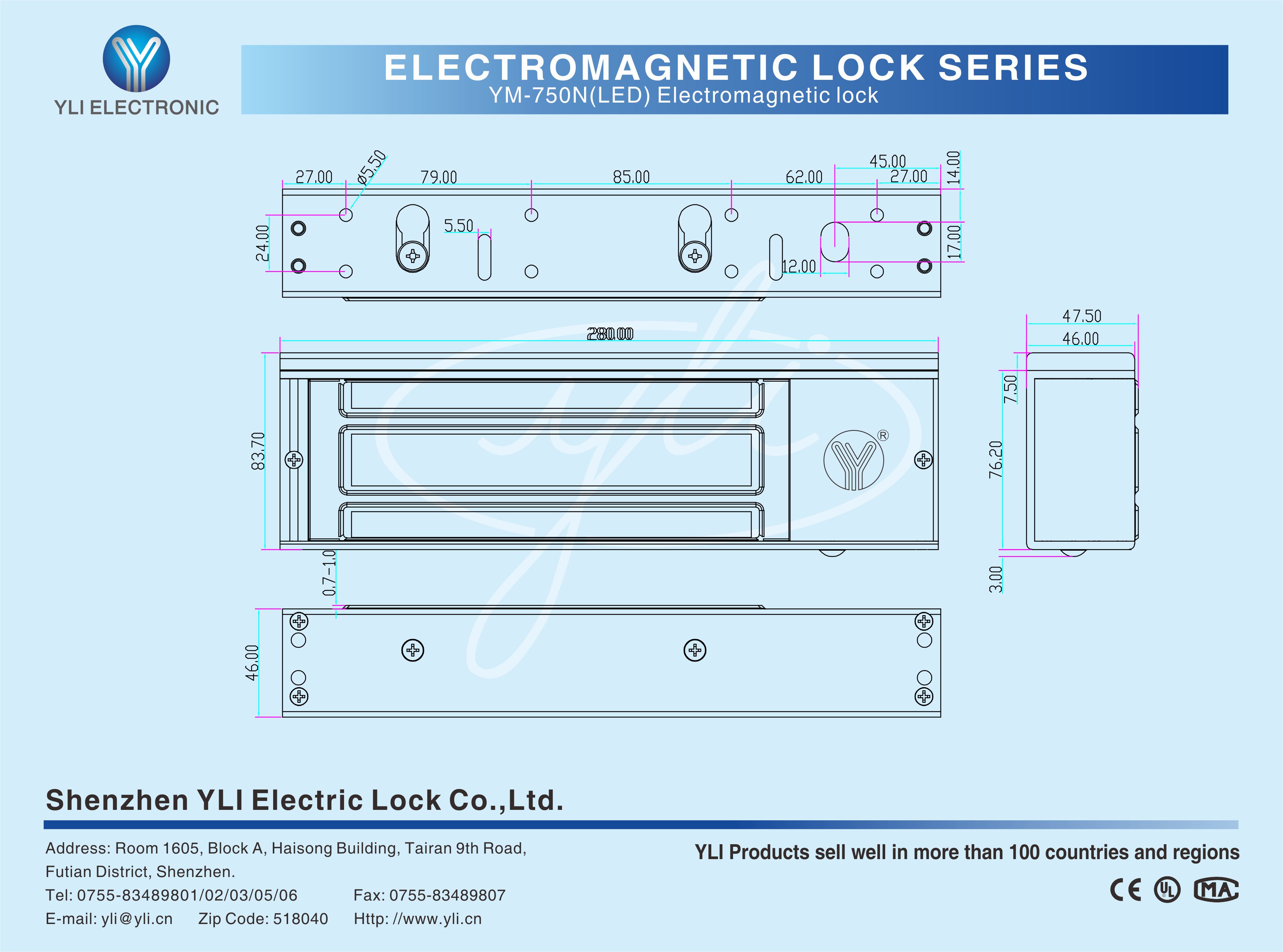 YM-750N(LED) Single door magnetic lock is designed for wooden door, metal door, glass door and fireproof door. There is a set of lock status signal (NO/NC/COM) output contacts. The lock body is equipped with a large LED light . The green light indicates unlocking , and the red light indicates locking. YLl magnetic lock cores are produced with robotic laser welding technology, providing 2 to 3 times stronger impact resistance and torsional resistance than conventional production processes . The surface is treated with the internationally leading electroplating process and the lock itself has passed the 240-hour salt spray test in the national laboratory, achieving excellent performance of anti-oxidation, anti-rust and anti-corrosion. Our company offers a complete range of brackets for different locks.