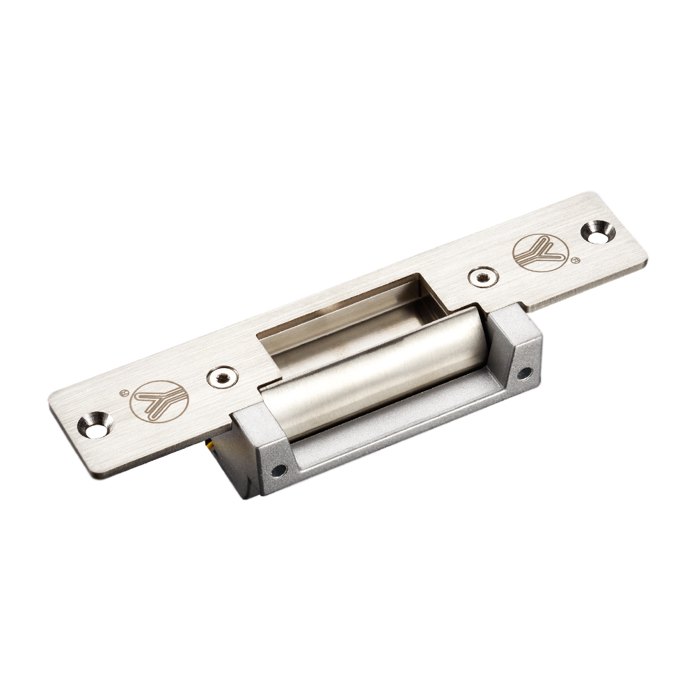 A new-type electric strike is integration of lock body and faceplate.Electromagnetic part works as linkage with retainer,maintains attracting working condition when electrified,which means unlocking;when power's off,spring returns then locks.Lock body adopts die casting Zinc alloy.Utilizes precison casting on bolt(surface polishing),bi-directional voltage,12V/24V optional.Suitable for wooden door,metal door,PVC door etc.