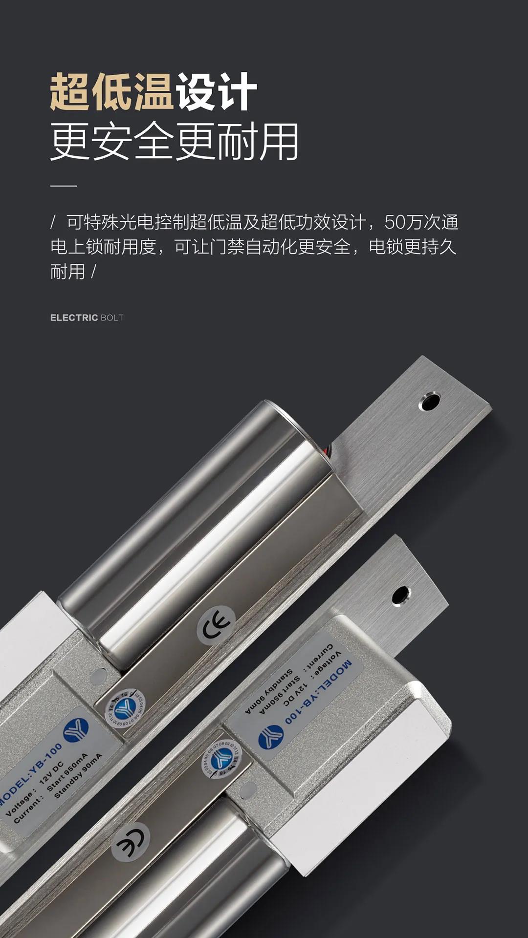 (也叫 “陽極鎖”)是針對一般玻璃門、木門、金屬門等設(shè)計,本公司產(chǎn)品配套齊全,上下無框玻璃門,內(nèi)外開式窄框門等均有附件配套,特殊光電控制超低溫及超低功效設(shè)計,可讓門禁自動化更安全,電鎖更持久耐用。