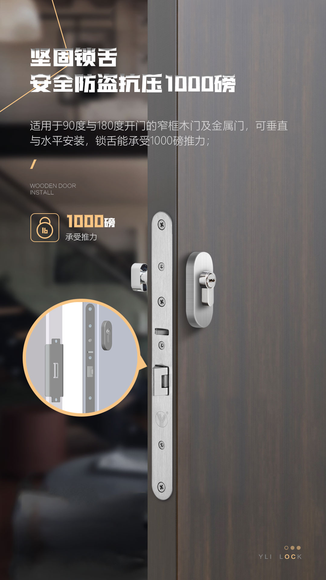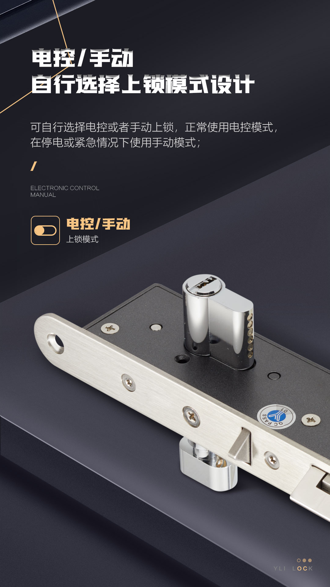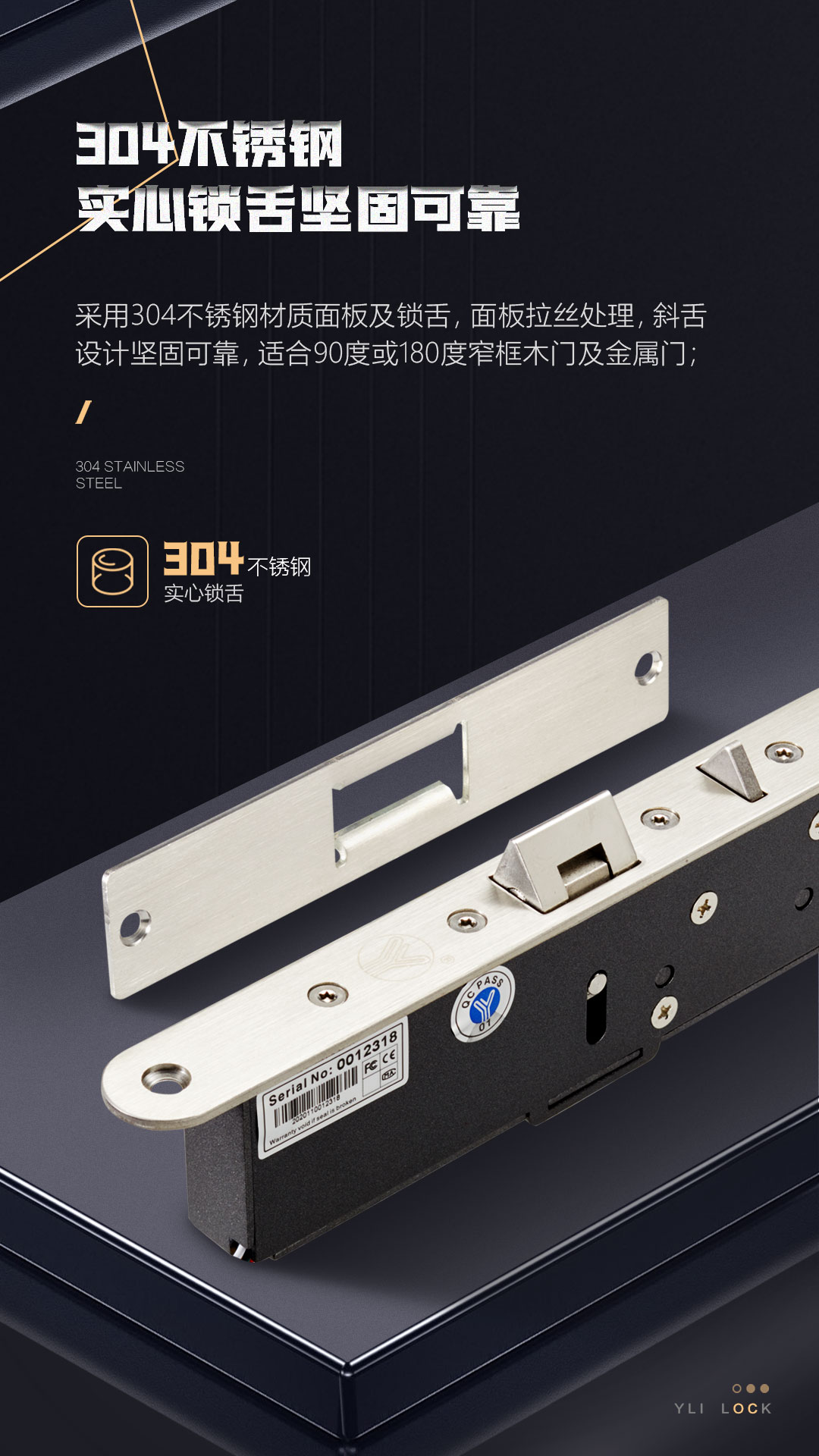 ,具有獨特的安全設計,可自行設定電鎖工作模式,鎖舌可承受800kg的沖擊,配有歐規(guī)鎖芯設計,