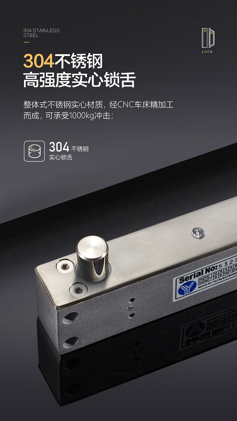 ,鎖舌采用整體式304不銹鋼實芯棒材,經(jīng)CNC車床精工而成,可承受1000kg沖擊而且鎖舌插出后防撬功能的特殊高保安設(shè)計,連動部件全部采用金屬結(jié)構(gòu),
