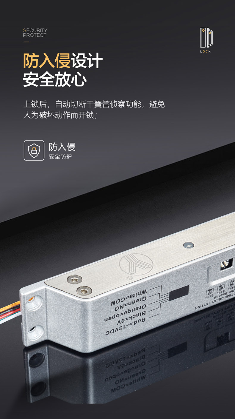 防入侵電路及智能邏輯電路設(shè)計等,多功能綜合于一體,是一款有效滿足上下外露式安裝于窄框金屬門、木門、PVC門使用的最佳產(chǎn)品。