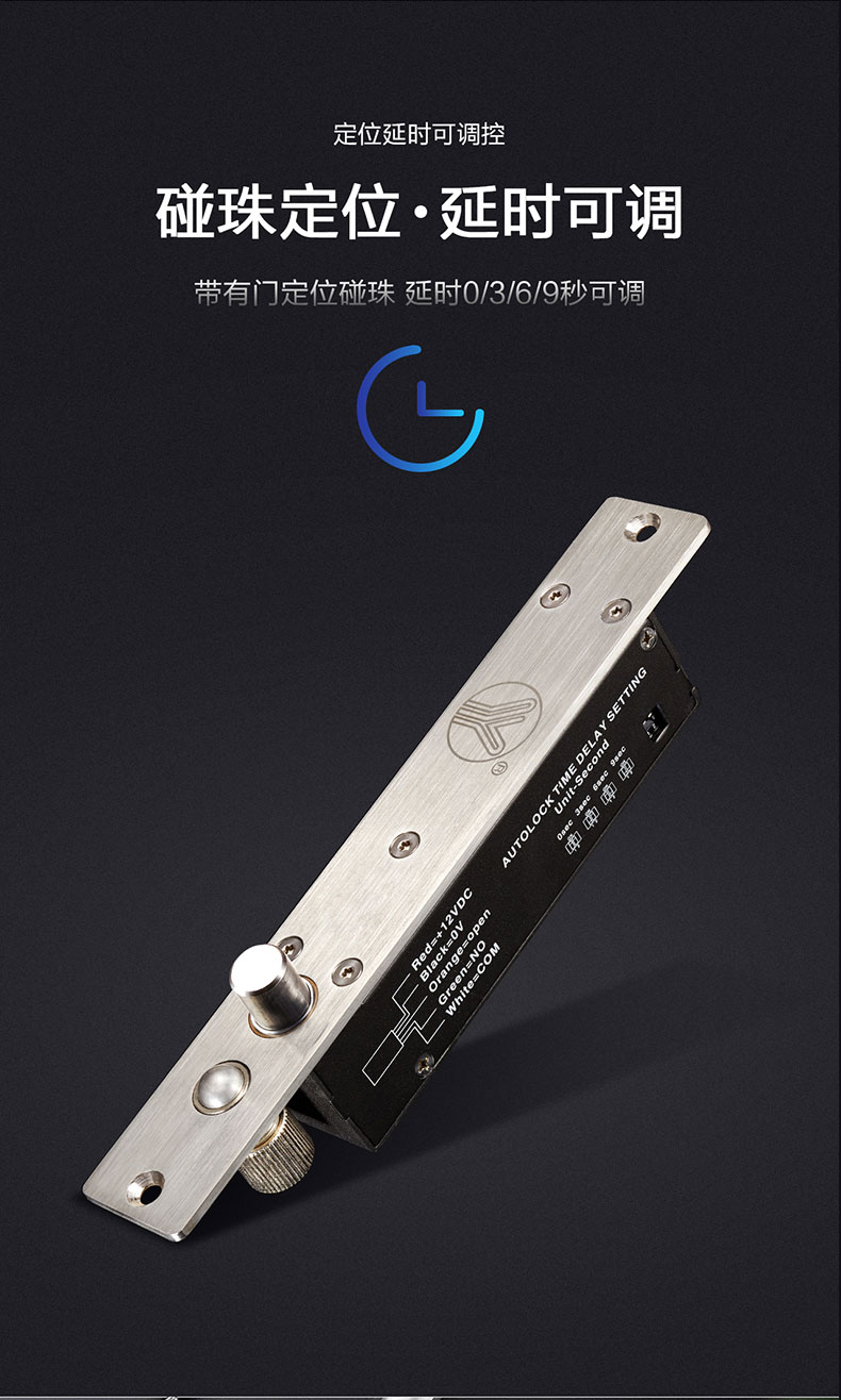 定位珠功能裝置的電插鎖,有效鎖定門(mén)扇防止180度雙向開(kāi)式門(mén)來(lái)回晃動(dòng),以免撞傷行人及有效防止地鼓偏位無(wú)法上鎖等。