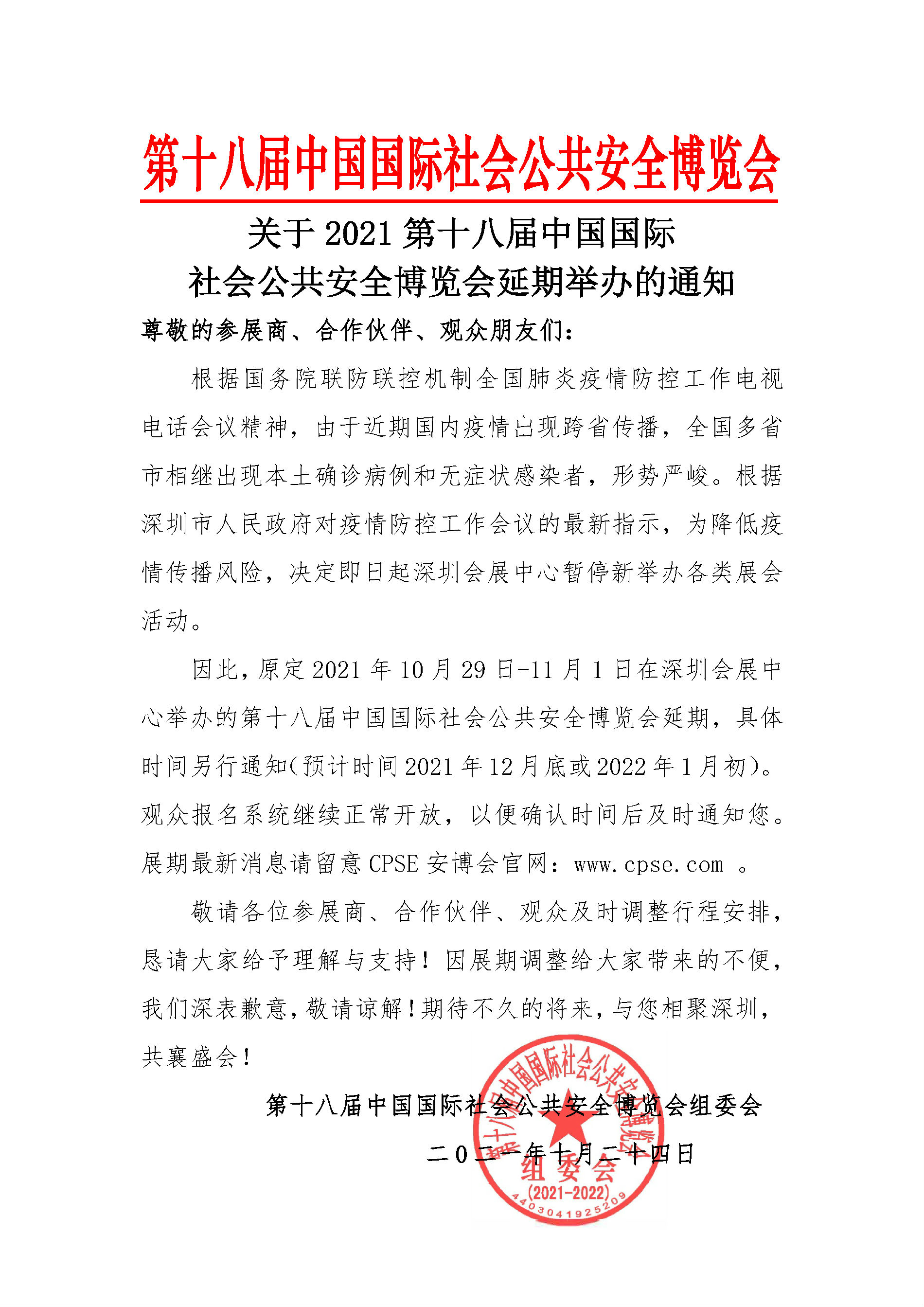 重要通知!2021年第十八屆CPSE安博會延期舉辦!