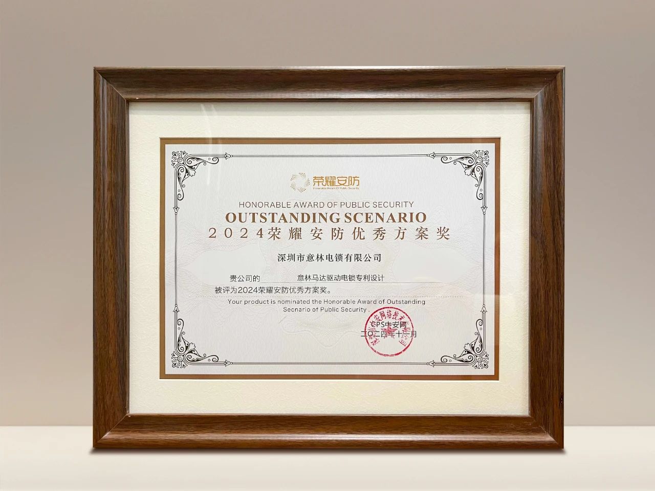 意林馬達驅(qū)動電鎖專利設(shè)計榮登 “榮耀安防2024榜單”