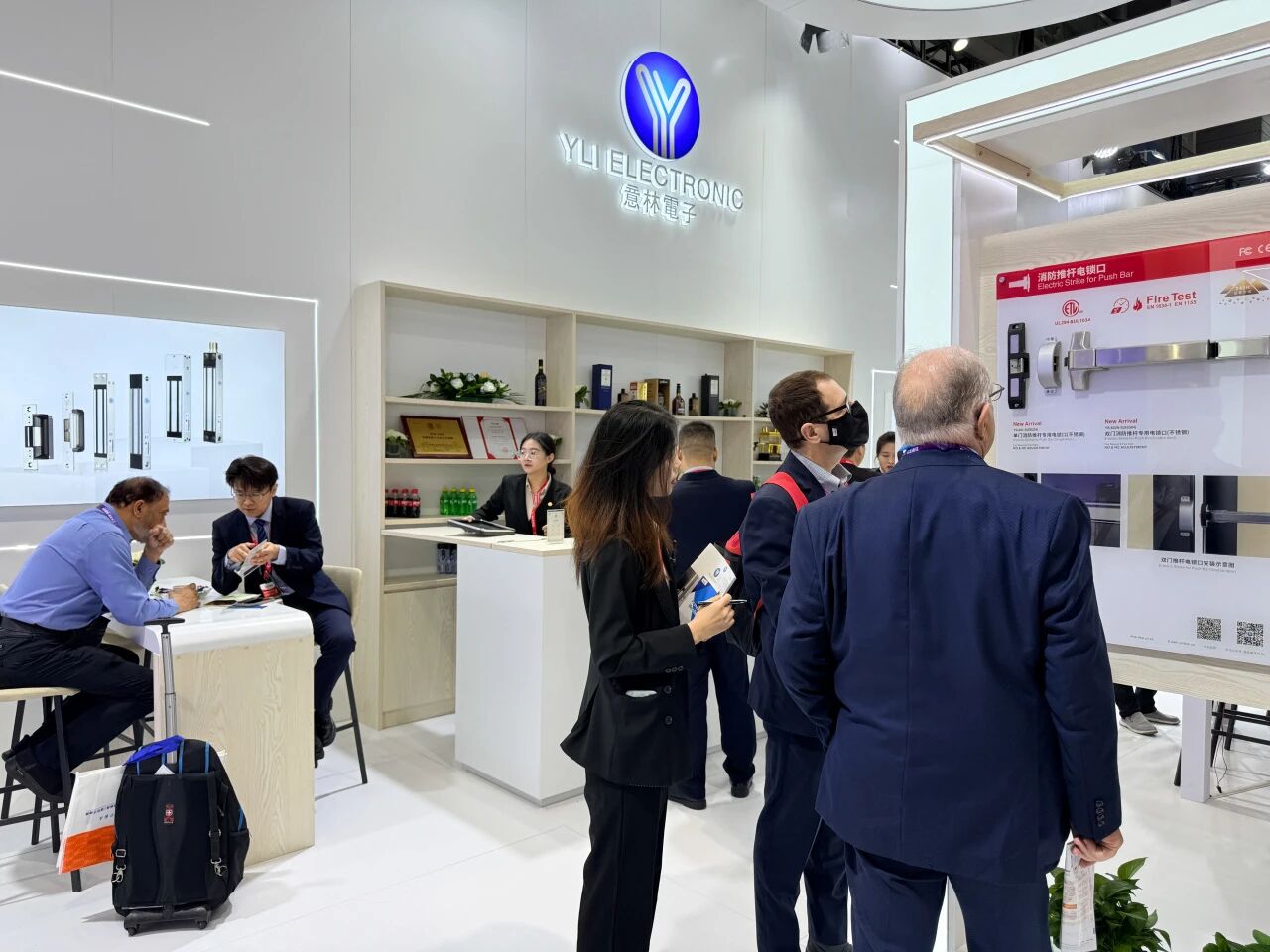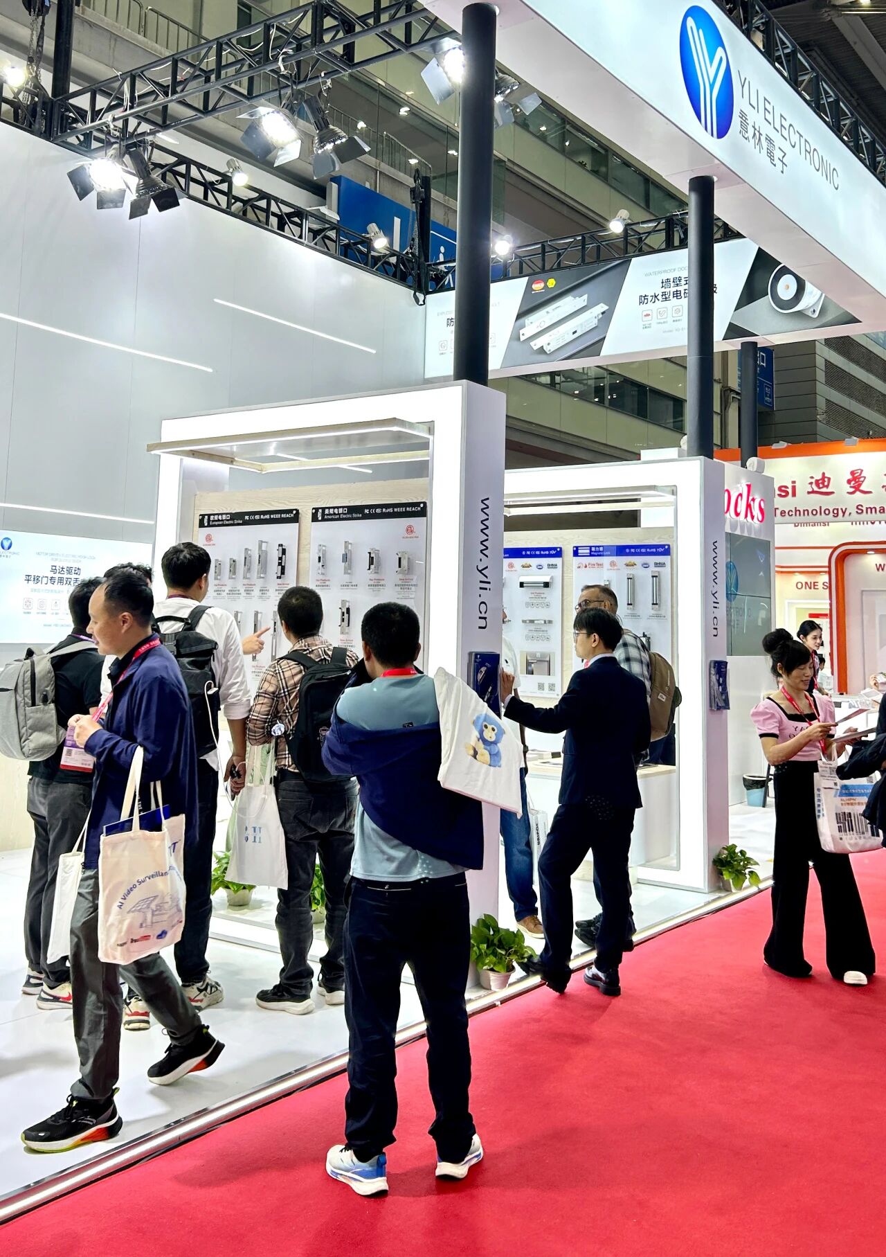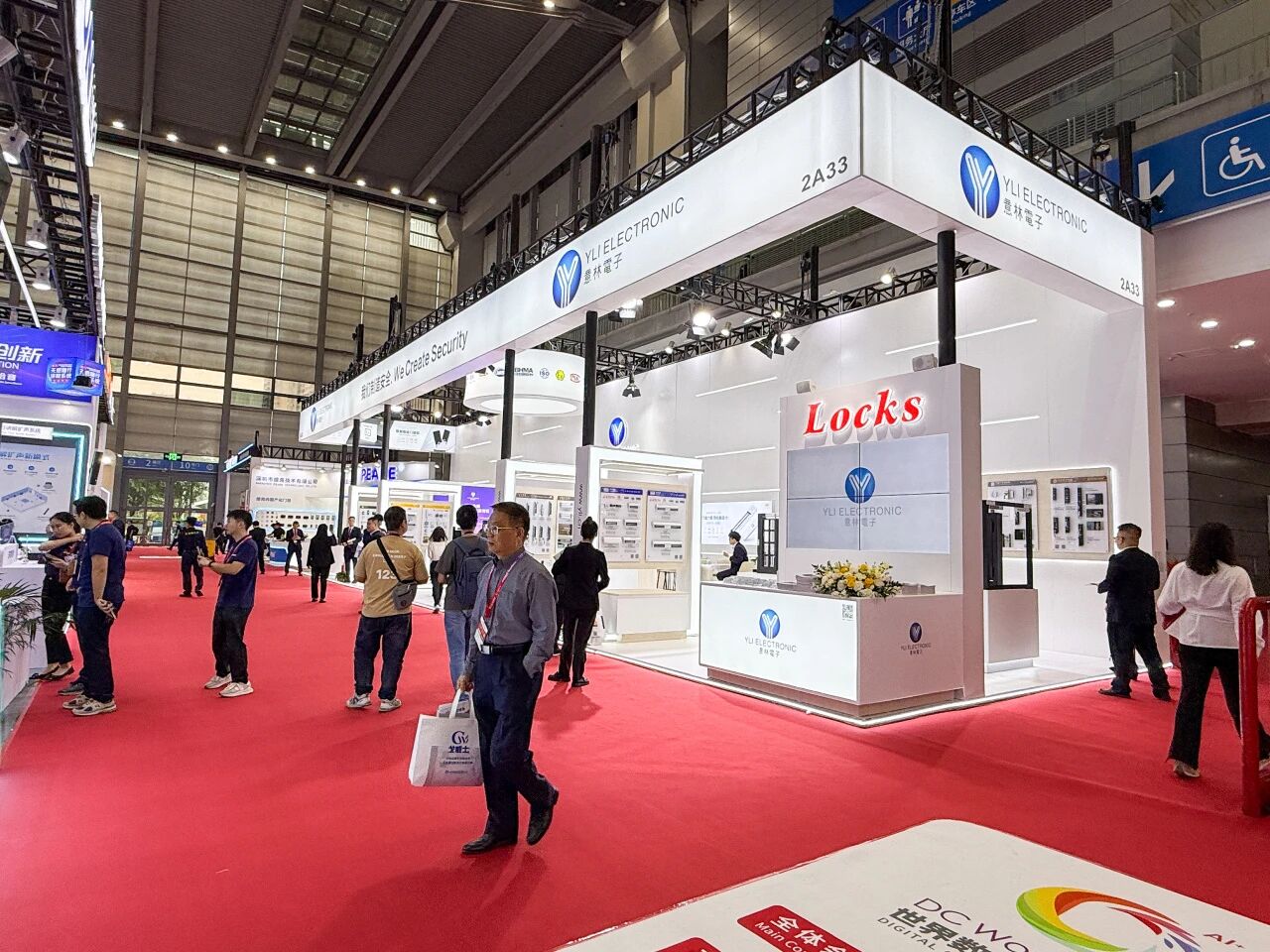 展會(huì)首日,會(huì)展中心門(mén)口排滿長(zhǎng)隊(duì),意林電子攜眾多門(mén)禁電鎖新品和一體化解決方案亮相2號(hào)館2A33,“我們制造安全” 的主題格外醒目。意林展位設(shè)計(jì)采用開(kāi)放式布局,以白色為主色調(diào),搭配明亮的燈光效果,營(yíng)造出專業(yè)而科技感的氛圍。不到半小時(shí),意林電子展位前便圍滿了咨詢的客戶。