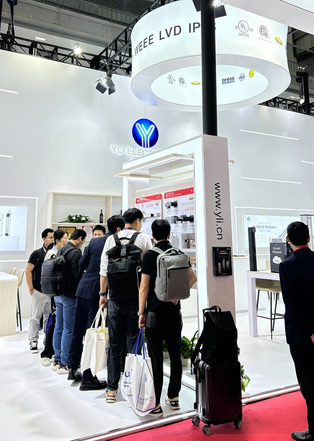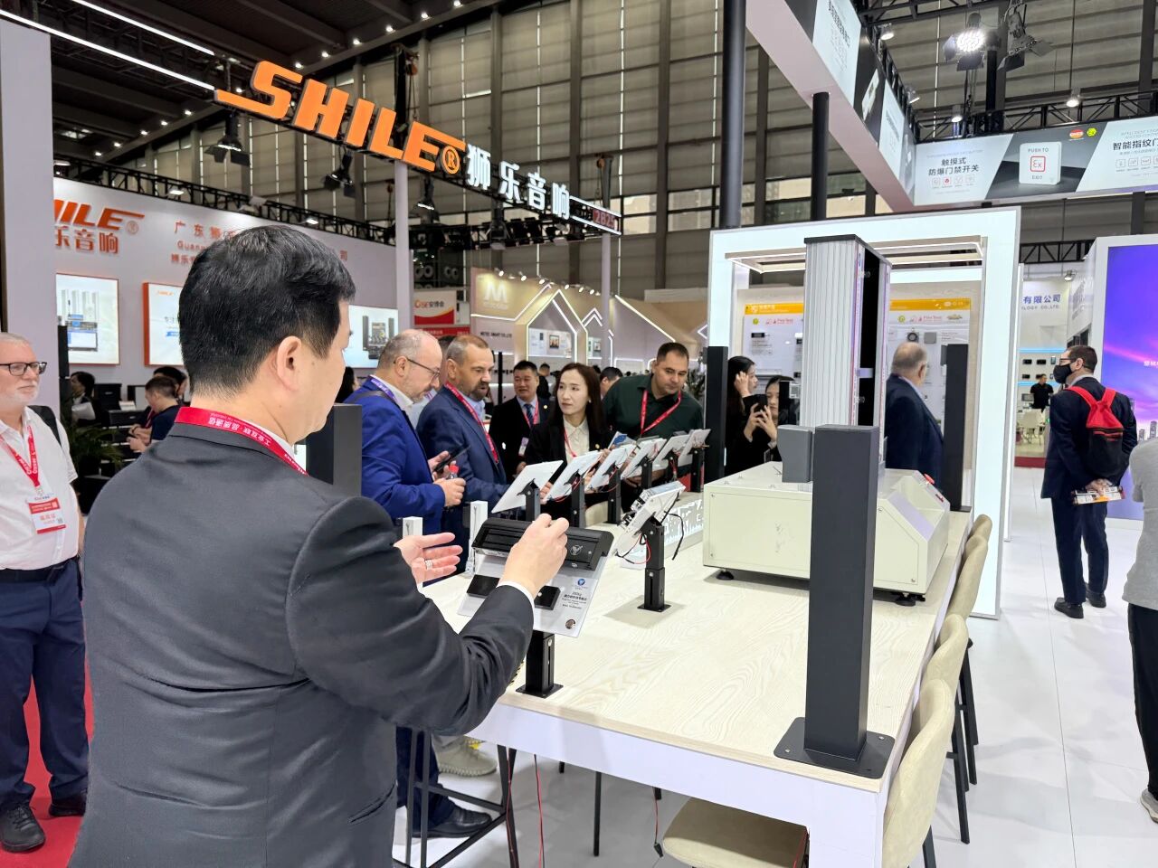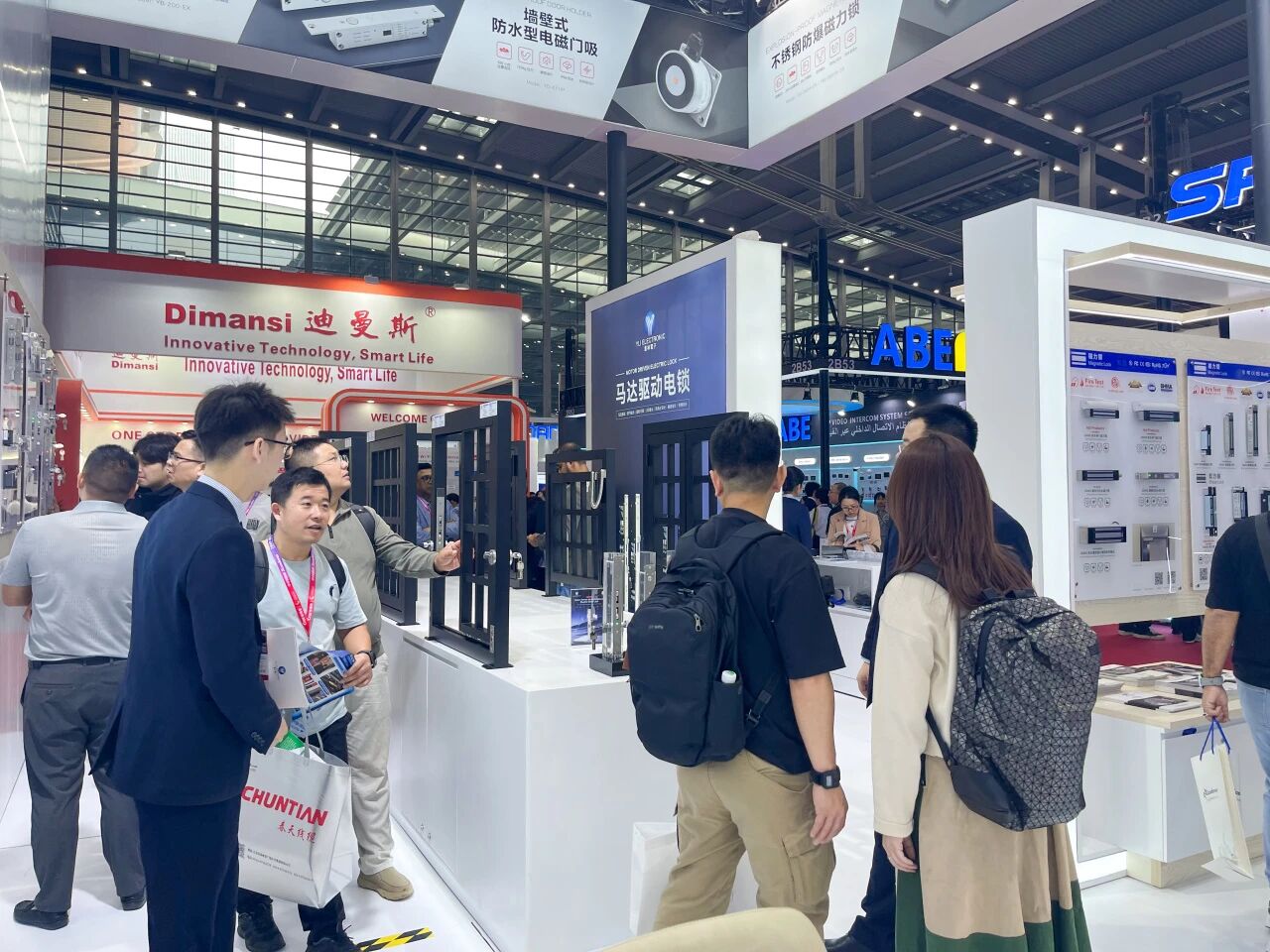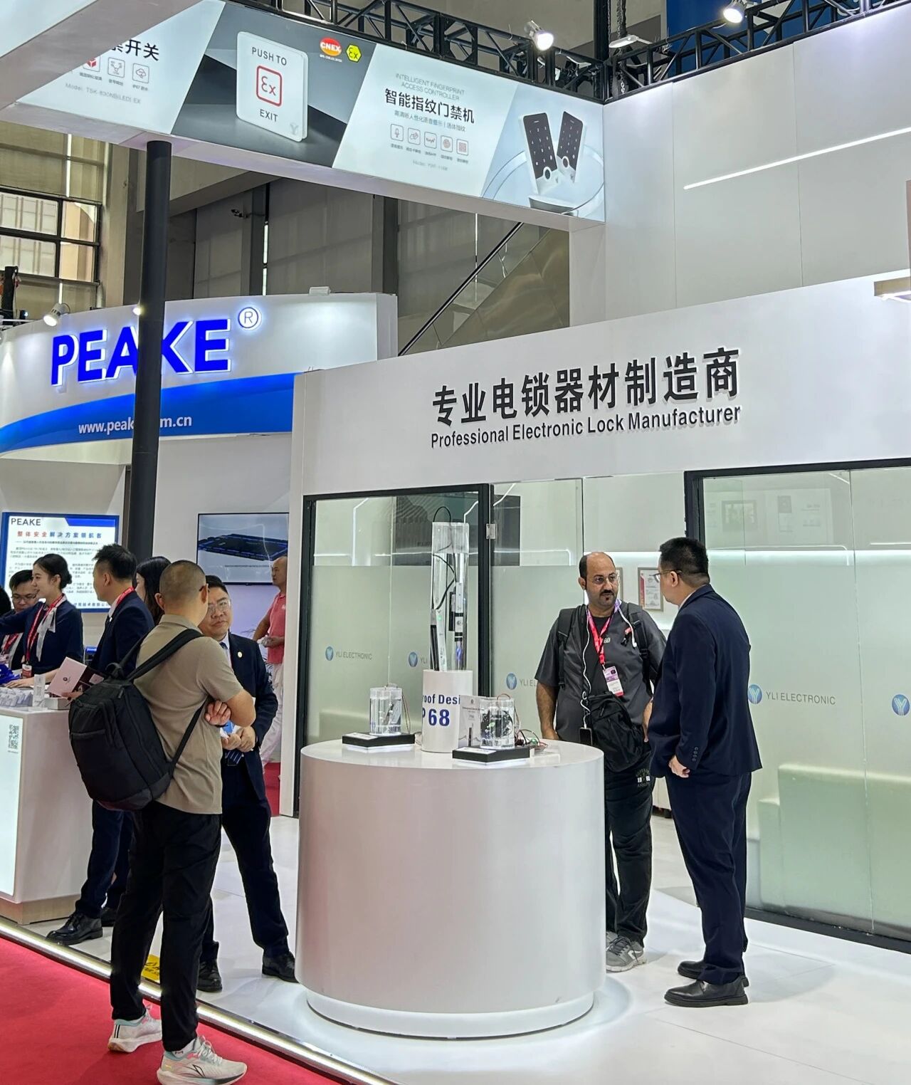 展會(huì)首日,會(huì)展中心門(mén)口排滿長(zhǎng)隊(duì),意林電子攜眾多門(mén)禁電鎖新品和一體化解決方案亮相2號(hào)館2A33,“我們制造安全” 的主題格外醒目。意林展位設(shè)計(jì)采用開(kāi)放式布局,以白色為主色調(diào),搭配明亮的燈光效果,營(yíng)造出專業(yè)而科技感的氛圍。不到半小時(shí),意林電子展位前便圍滿了咨詢的客戶。