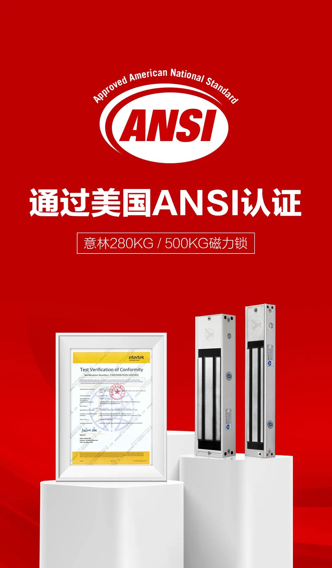Intertek天祥集團(tuán)為意林電子的磁力鎖及電鎖口產(chǎn)品頒發(fā)國內(nèi)首張基于【UL 294&UL 1034標(biāo)準(zhǔn)】的ETL證書。該認(rèn)證標(biāo)志著產(chǎn)品符合北美市場對電鎖安全性與功能性的最新要求,是進(jìn)入美國、加拿大市場的強(qiáng)制性通行證。