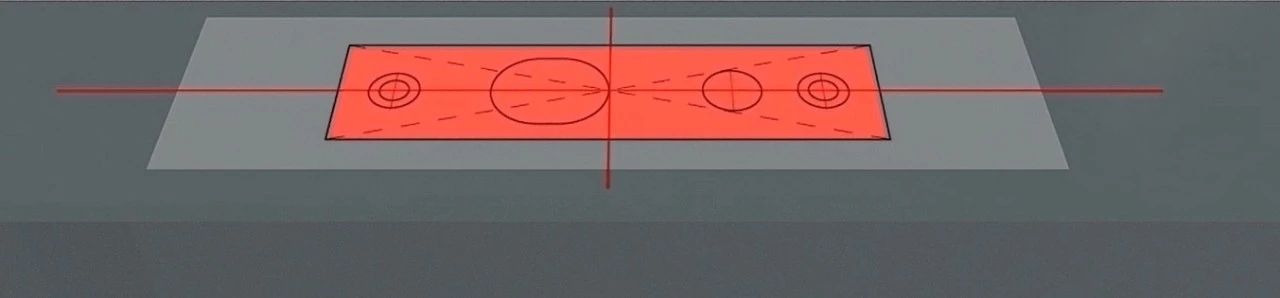6.依照第一步測(cè)量好的中心點(diǎn)貼好開孔紙