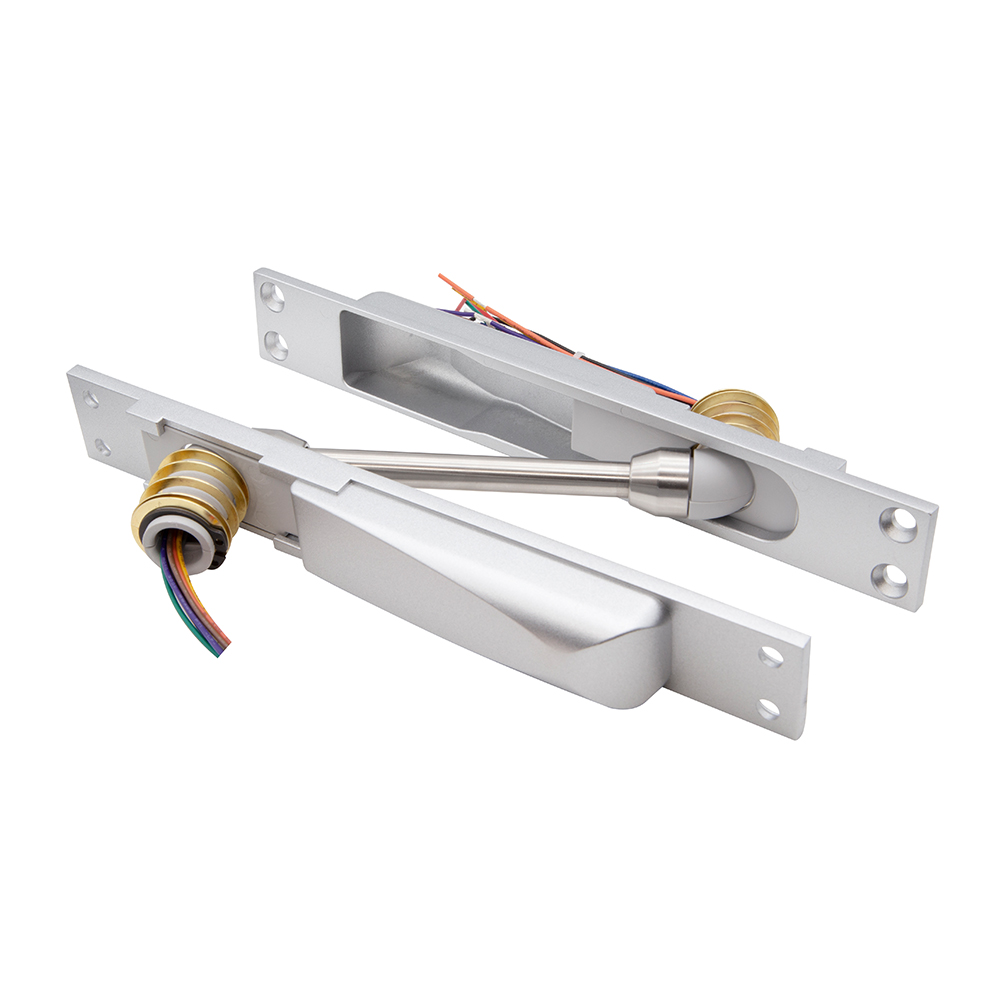 美規(guī)設(shè)計(jì)暗裝式過(guò)線保護(hù)器,外殼采用鋅合金材質(zhì),表面烤銀油處理線管,采用SS304不銹鋼材質(zhì),表面拋光處理;電鎖或電器裝置走線經(jīng)過(guò)門(mén)縫與門(mén)框形成外露暗裝式過(guò)線保護(hù)器,為有效保護(hù)此段電路而設(shè)計(jì),防止過(guò)線損壞。適用于各種單開(kāi)門(mén)、雙開(kāi)門(mén)、金屬門(mén)、木門(mén)特殊工藝處理,更堅(jiān)固、更耐用、更美觀。