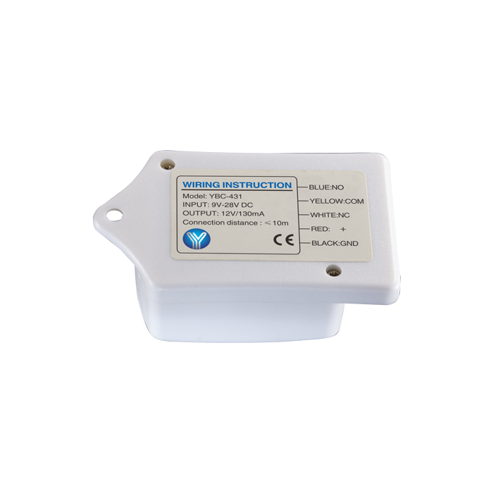 YBC-431是一款時尚、安全、便捷的藍(lán)牙開鎖功能的控制器,與手機(jī)設(shè)備連接使用,有效用戶255個,有效開門距離10米,DC9V-DC28V寬電壓設(shè)計(jì),廣泛應(yīng)用于門禁管制需求辦公場所、居民小區(qū)、出入車庫門、電動閘門、商鋪卷簾門等.YBC-431安裝使用非常簡單,在原有的門禁控制器電源或電鎖上直接加裝連接即可使用,無需施工或更換任何設(shè)備,適合新舊用戶使用.YBC-431 APP程序下載十分簡便,在蘋果商店免費(fèi)下載(僅支持蘋果用戶)。程序操作十分簡單易用.(本產(chǎn)品軟件著作及程式已申請專利保護(hù),仿冒必究!)