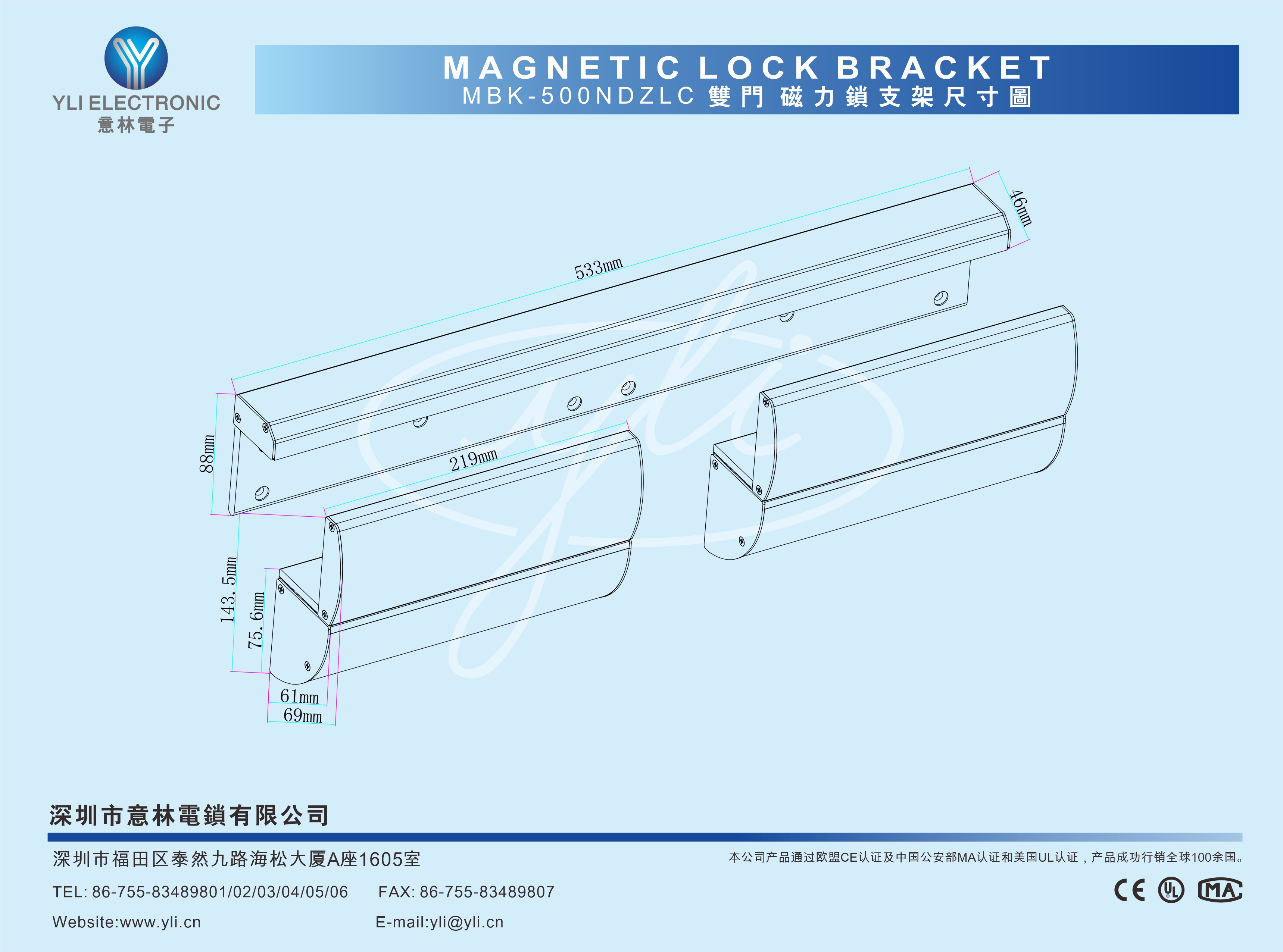 適用電鎖  YLI品牌系列磁力鎖