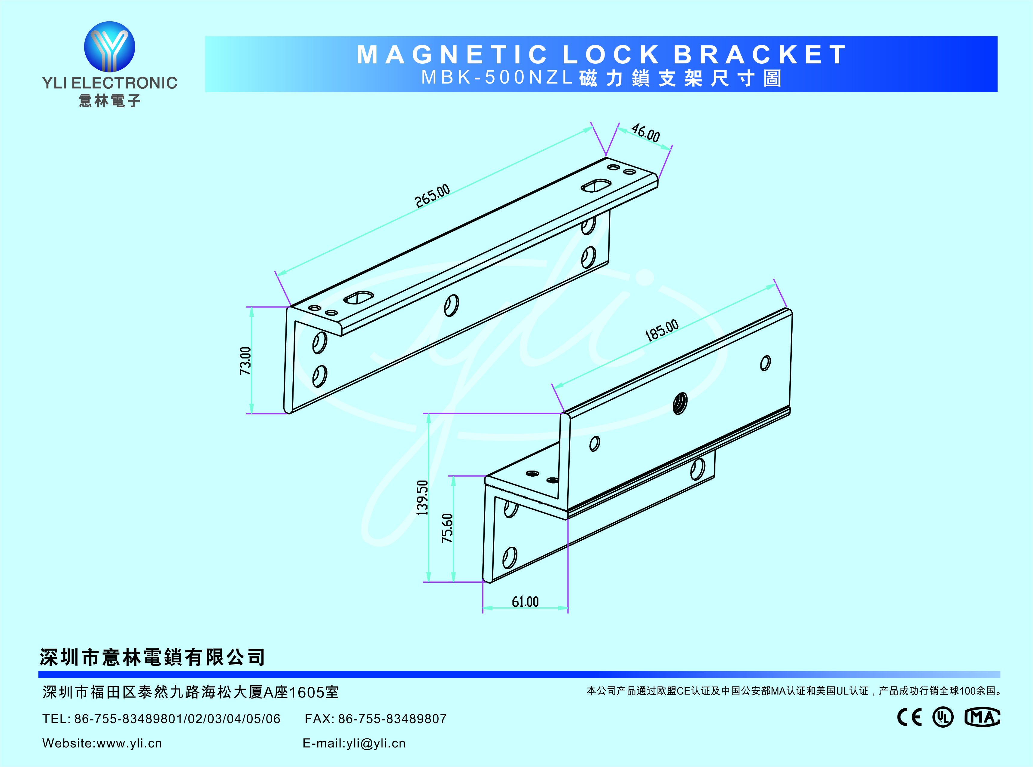 L型支架:長(zhǎng)265x寬73x厚46(mm)     Z型支架:長(zhǎng)185x寬70x厚61(mm) (MBK-500NZL)