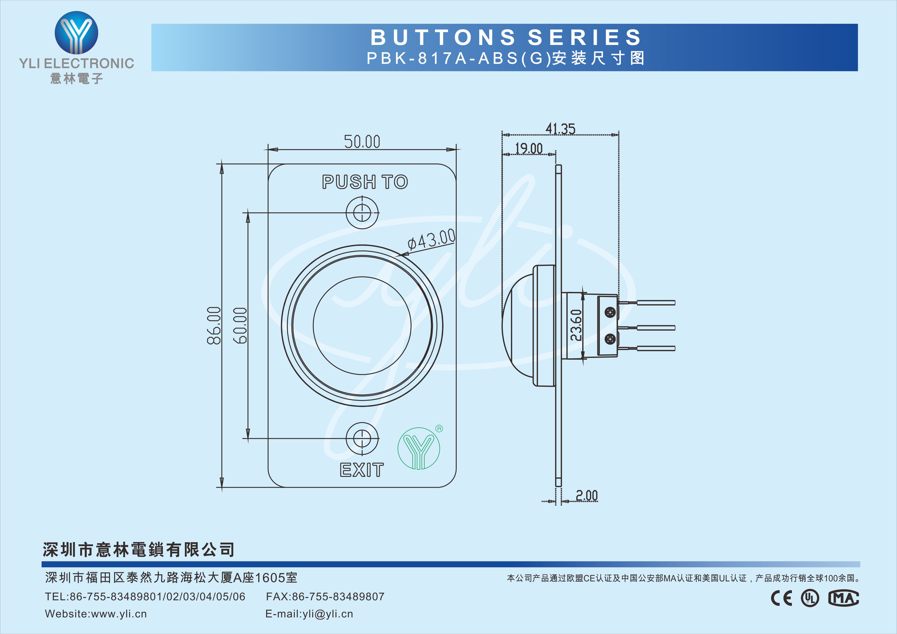 304不銹鋼面板表面拉絲,ABS大按鈕 |