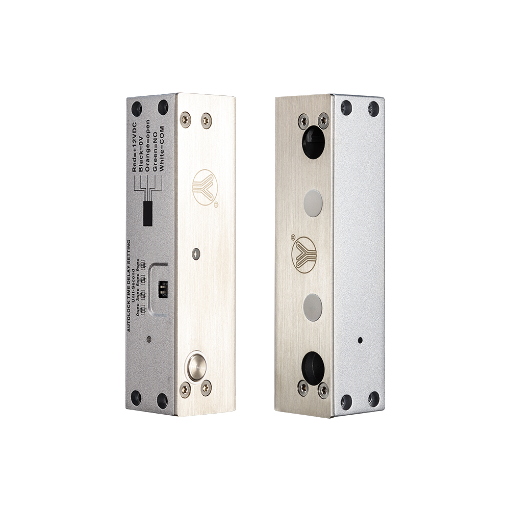 YB-500U(LED)是一款全金屬結(jié)構(gòu)的上下無框玻璃門專用智能型電插鎖,鎖舌采用整體式304不銹鋼實芯棒材經(jīng)CNC車床精工而成,可承受1000kg靜態(tài)沖擊力,鎖舌插出后防撬功能設(shè)計,連動部件全部采用金屬結(jié)構(gòu),在60℃高溫及零下30℃嚴寒的惡劣環(huán)境可正常使用, 專業(yè)耐用型電磁閥,特殊光電控制超低溫及超低功耗設(shè)計。防入侵電路及智能邏輯電路設(shè)計等多功能綜合于一體,是一款適合(10~12mm)厚度的上下無框玻璃門及高安保需求場所安裝使用。