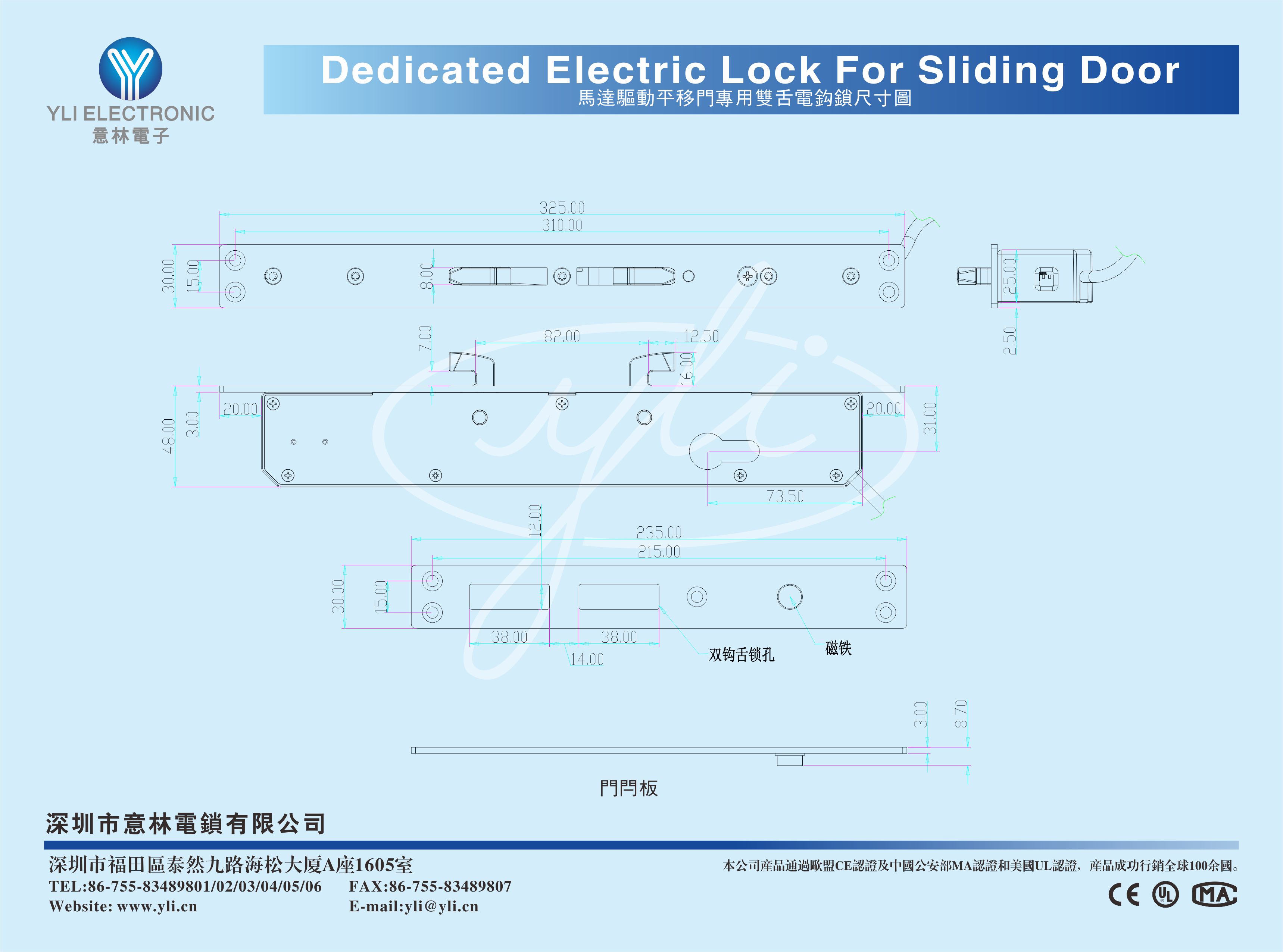 馬達(dá)驅(qū)動平移門專用雙舌電鉤鎖