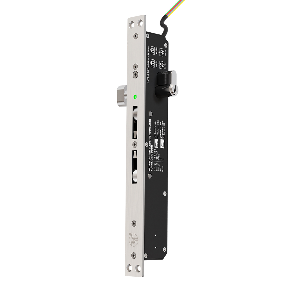 馬達(dá)驅(qū)動電鉤鎖采用雙鉤反向式防脫鉤設(shè)計,防止抬門及防撬功能。
