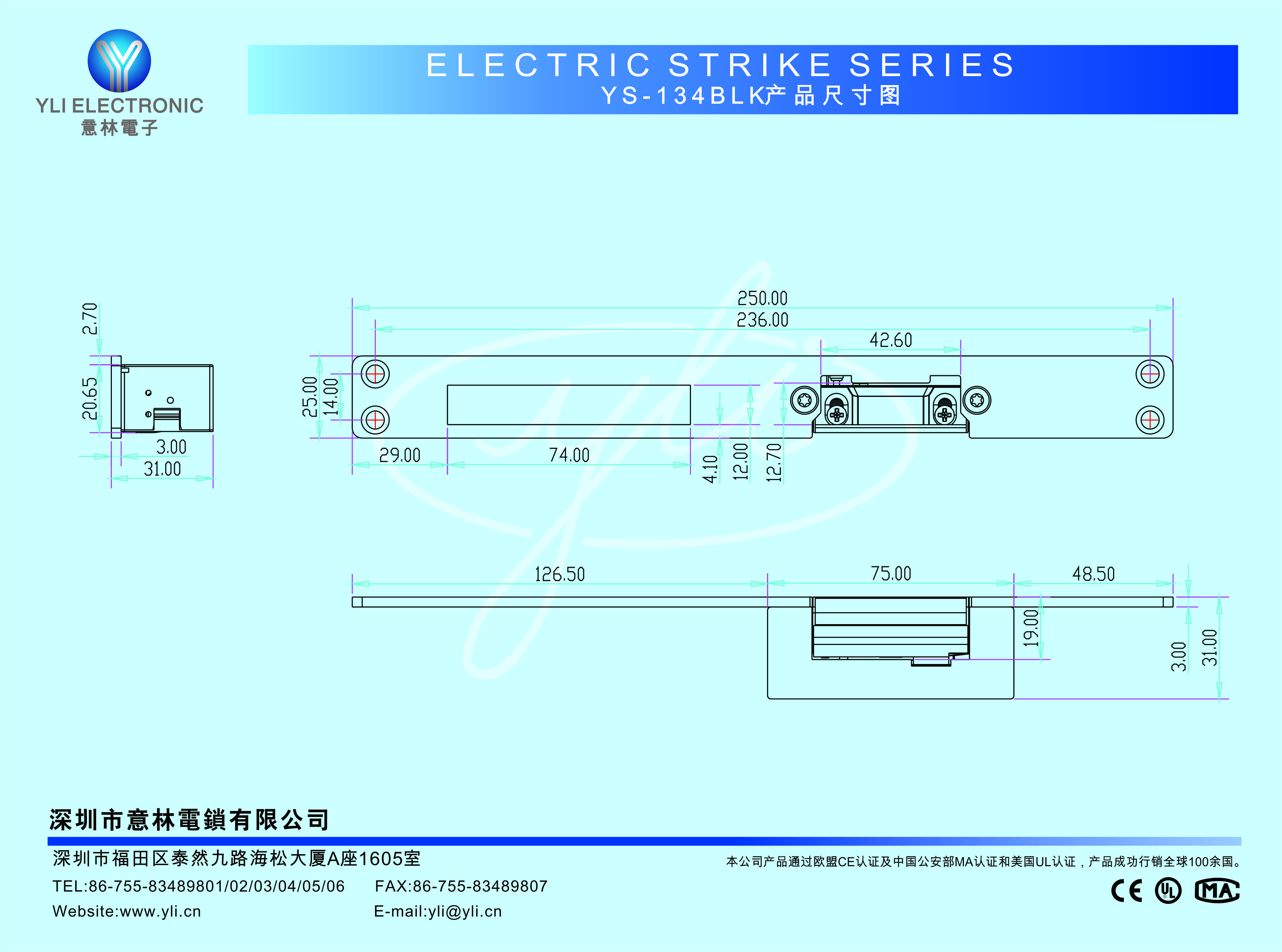 YS-134LK/134B 是一款窄框型歐式長面板電鎖口,是針對窄框木門、窄框金屬門等設(shè)計的。采用金屬結(jié)構(gòu),鎖舌采用鋅合金壓鑄,面板304不銹鋼材質(zhì),堅固耐用,承受300kg推力。斷電上鎖安全類型。
