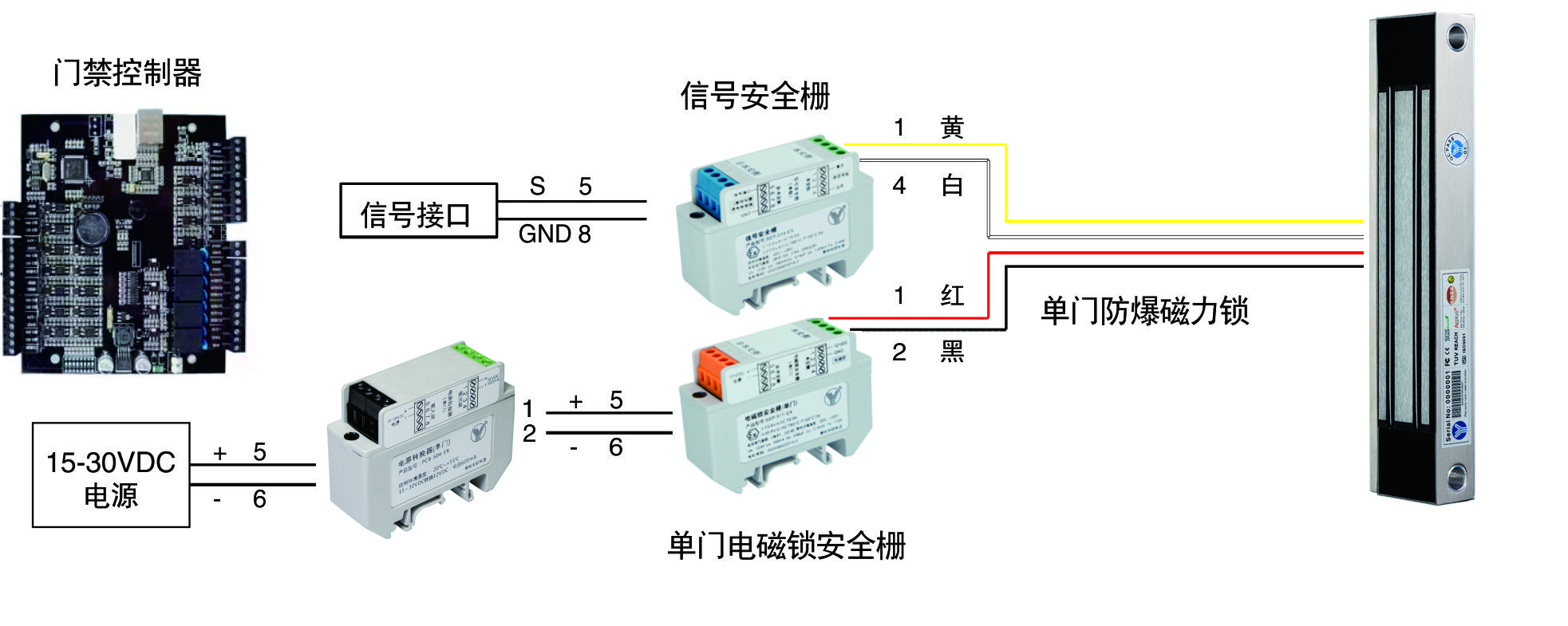 電源轉(zhuǎn)換器能將15~30VDC電源輸入轉(zhuǎn)換成12VDC輸出,供電磁鎖安全柵和防爆電磁鎖配套使用,防爆電磁鎖電源安全柵安裝在安全區(qū)或防爆箱內(nèi),連接危險(xiǎn)區(qū)的防爆電磁鎖。