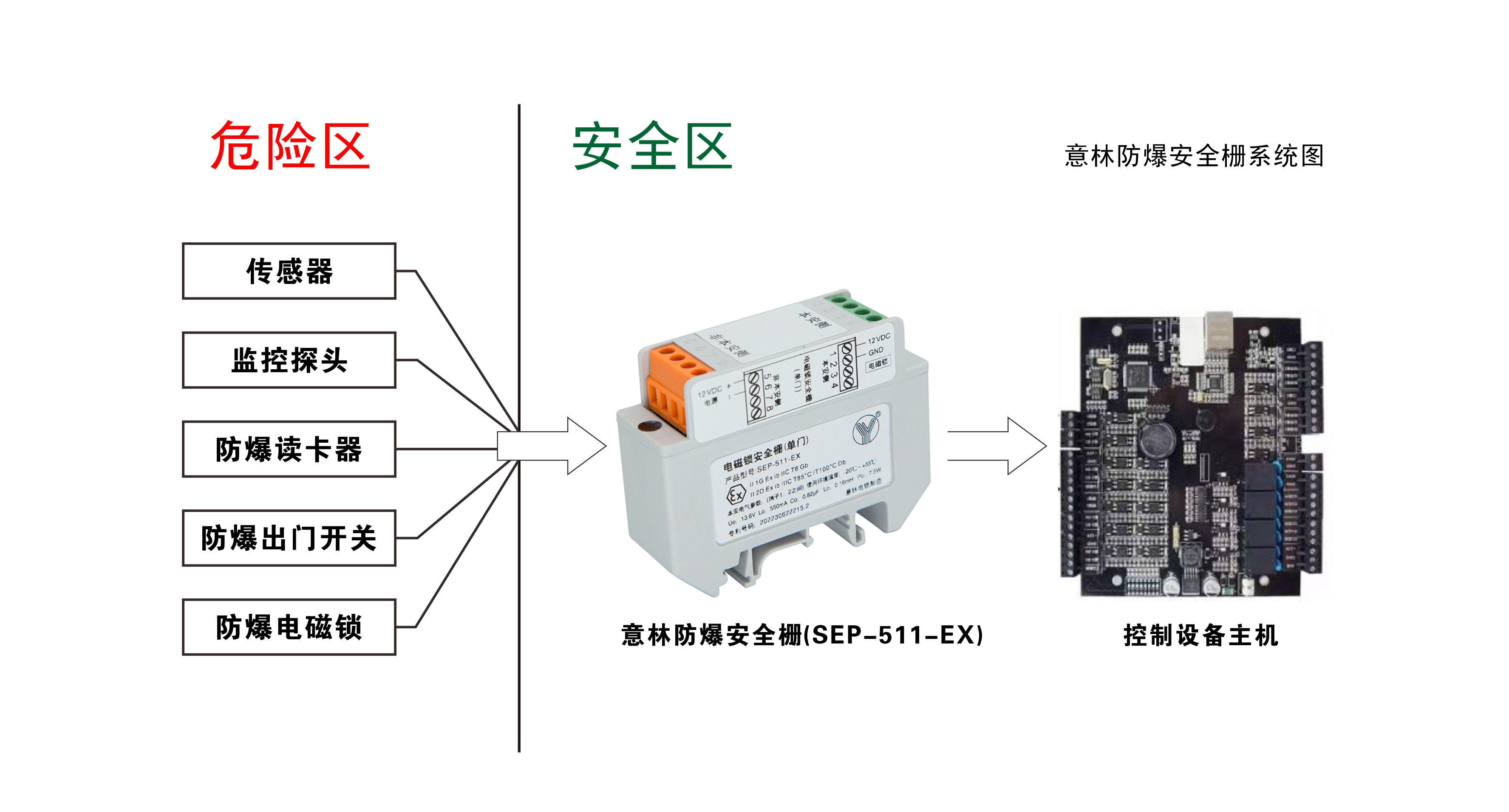 防爆安全柵電路中采用快速熔斷器、限流電阻或限壓二極管以對(duì)輸入的電能量進(jìn)行限制,從而保證輸出到危險(xiǎn)區(qū)的能量。