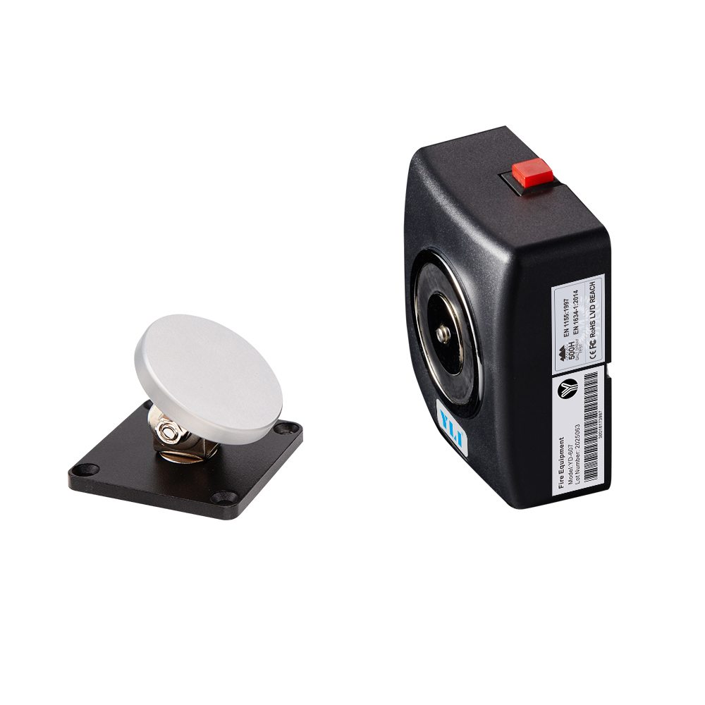 YD-607是一款防火塑料外殼電磁門(mén)吸,電磁門(mén)吸可單獨(dú)使用或與消防系統(tǒng)一起使用,電磁 門(mén)吸的電源是由消防系統(tǒng)供電(DC12或24V)。日常各區(qū)域之間的消防通道防火門(mén)由電磁門(mén)吸吸住門(mén)扇保持開(kāi)門(mén)狀態(tài),當(dāng)火災(zāi)警報(bào)時(shí)消防系統(tǒng)斷電,電磁門(mén)吸在斷電狀態(tài)下迅速釋放門(mén)扇,防火門(mén)由閉門(mén)器自動(dòng)關(guān)閉,有效阻擋火勢(shì)與煙霧蔓延到另外區(qū)域。本產(chǎn)品廣泛應(yīng)用在商場(chǎng),酒店,寫(xiě)字樓,醫(yī) 院、學(xué)校、或是公共建筑等。意林電磁門(mén)吸專業(yè)殘磁設(shè)計(jì)0.5秒消磁釋放門(mén)扇,系列產(chǎn)品通過(guò)歐盟EN1634.3小時(shí)防火認(rèn)證及國(guó)家實(shí)驗(yàn)室500小時(shí)鹽露測(cè)試,更安全,更持久耐用,是市場(chǎng)上少有合規(guī)產(chǎn)品。