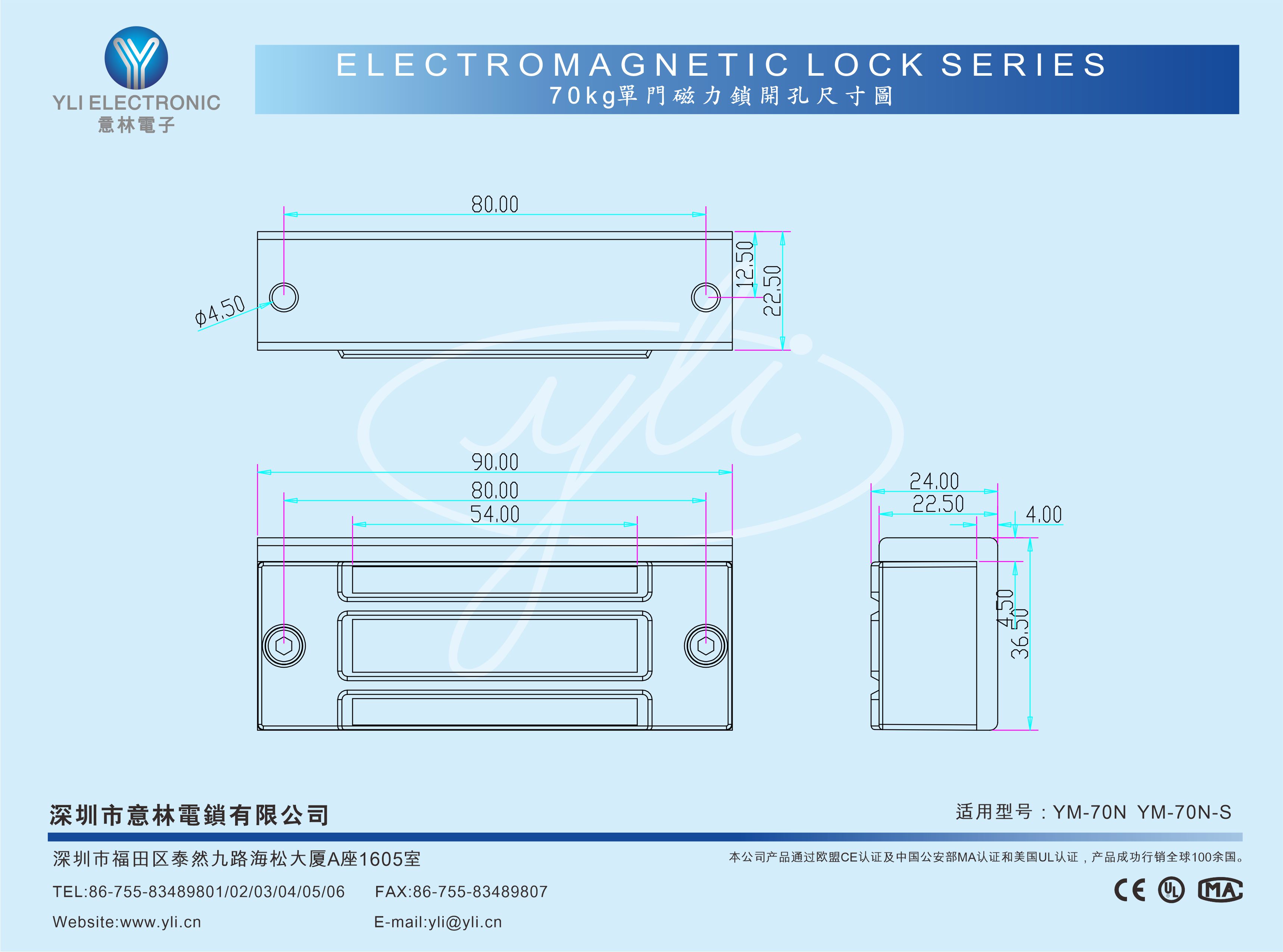 YM-70N/YM-70N-S迷你型磁力鎖是針對(duì)一般櫥窗門、儲(chǔ)物柜門等設(shè)計(jì)的,吊裝式設(shè)計(jì),安裝時(shí)省時(shí)省力。內(nèi)開式門或無(wú)框玻璃門、窄框等均有附件配套,特殊防殘磁設(shè)計(jì),讓門禁自動(dòng)化更安全。
