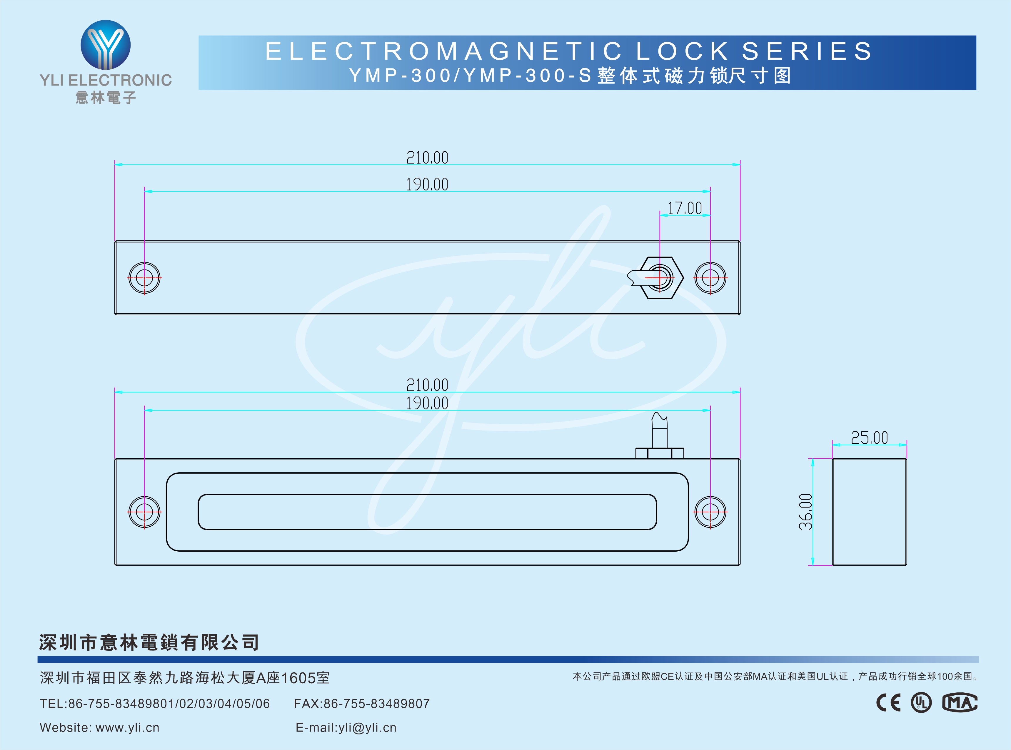 YMP-300-S是一款整體式結(jié)構(gòu)的單門磁力鎖附鎖信號輸出,鎖體采用整體式電磁專用型材經(jīng)特制設(shè)備精工而成,抗撞擊力及抗扭力更強,更堅固耐用。內(nèi)設(shè)有一組鎖狀態(tài)信號(NO/COM)輸出接點,為門禁系統(tǒng)實時反饋信息。意林磁力鎖加大電磁吸力設(shè)計吸力超強,表面處理采用國際領(lǐng)先的電鍍工藝,通過國家實驗室240小時鹽霧測試,達到防氧化、防銹、防腐性能。產(chǎn)品廣泛應(yīng)用于日常辦公場景或沿海鹽霧.潮濕(如:地鐵,機場,核電站,跨海大橋,港口碼頭,醫(yī)療機構(gòu),沿海城市建筑)等場景使用。本公司產(chǎn)品規(guī)格及配套齊全,內(nèi)開式門或無框玻璃門、窄框門等均有安裝支架配套,有效滿足現(xiàn)代智能建筑的各種場景需求。